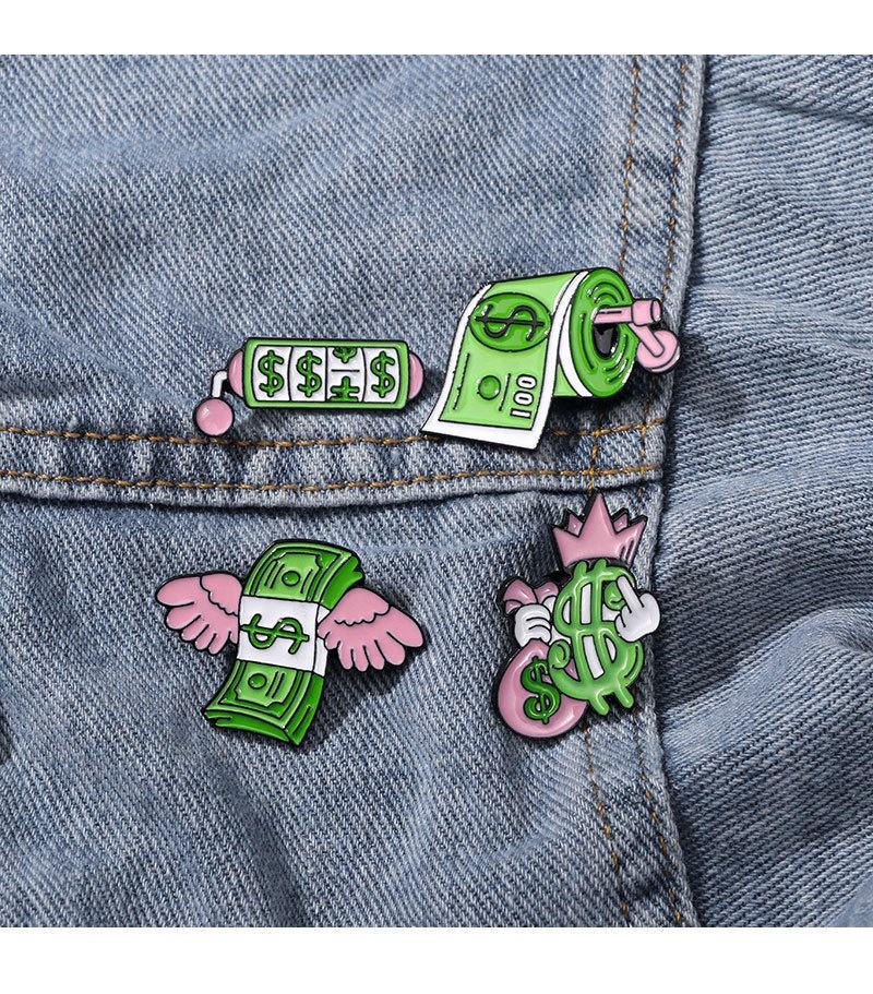 Dibujos animados creativo papel térmico insignia dólares broche lindo divertido billete dólares dinero esmalte solapa Pin