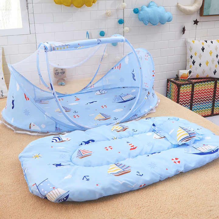 Juego de Ropa de Cama Plegable para Bebé con Estampado de Dibujos Animados, con Mosquitero, de Algodón Ecológico Premium