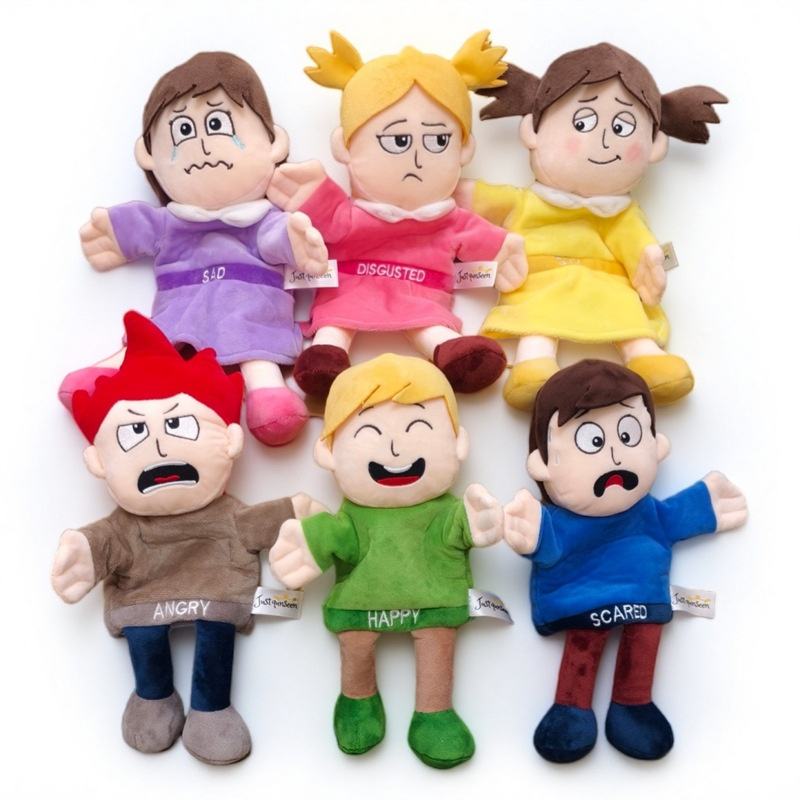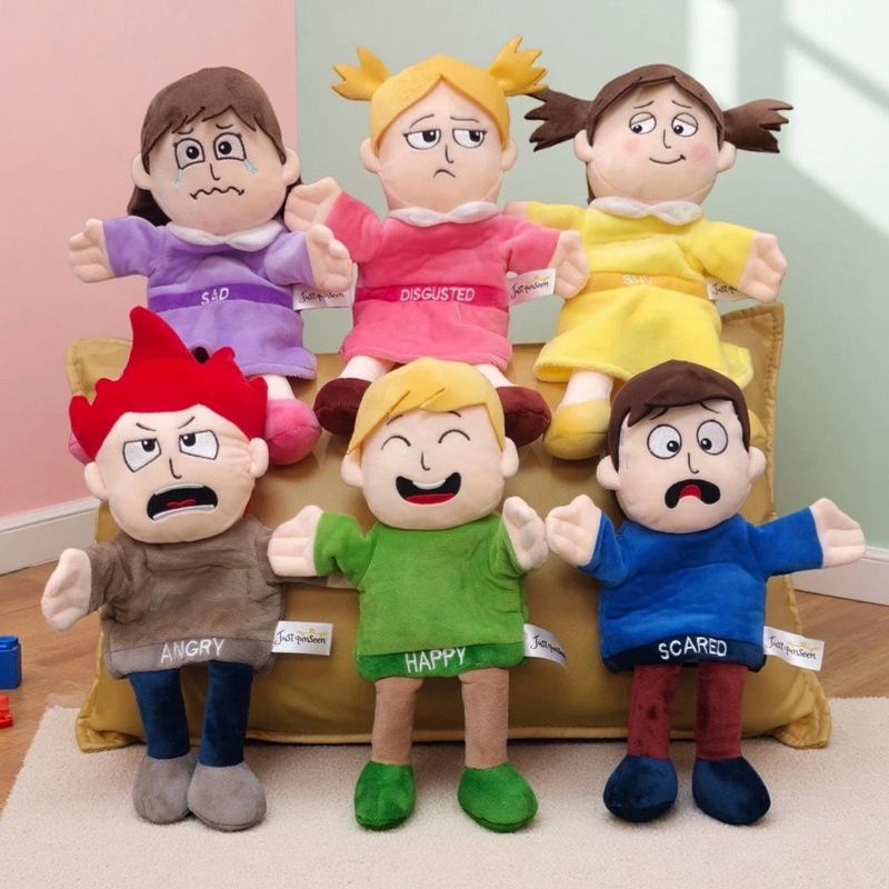 Marioneta de mano de dibujos animados de niña linda con emociones, muñeco de peluche, muñeco de tela con relleno de algodón PP para bebé, marioneta de dedo, accesorio para actuaciones