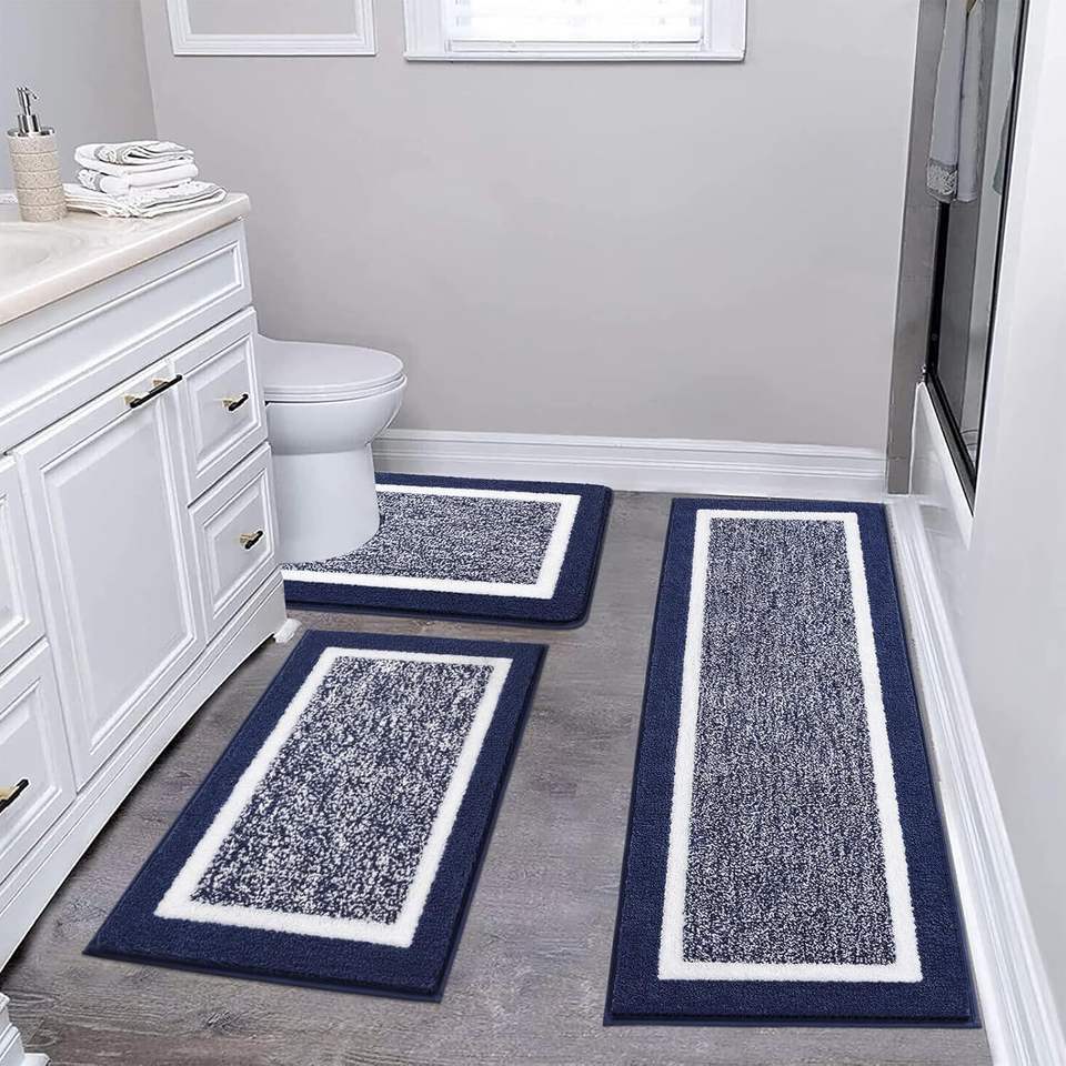 Juego de alfombras de baño de Cachemira de imitación Simple de 3 piezas con diseño de dibujos animados, alfombrilla de inodoro antideslizante absorbente para suelo de ducha en Stock