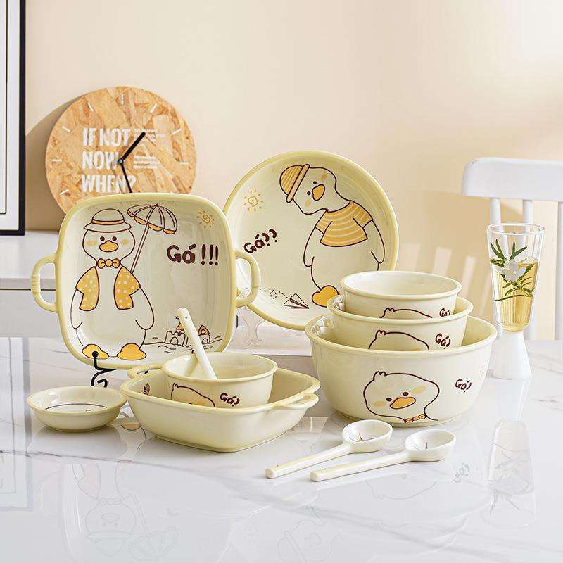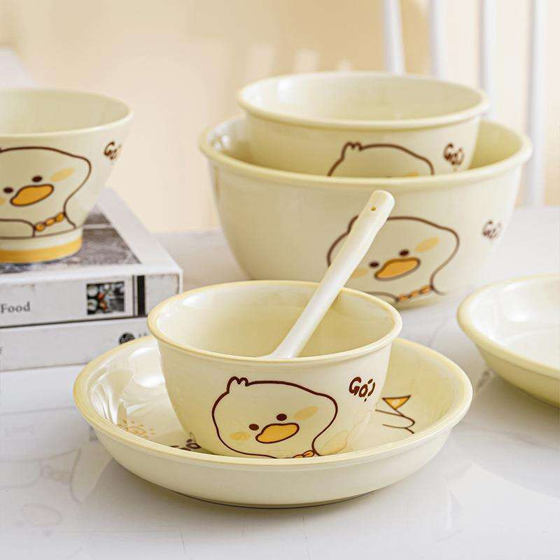 Juego de vajilla de cerámica de pato de dibujos animados para niños, hogar, Hotel, restaurante, fiesta, plato, cuenco y plato de porcelana de arroz