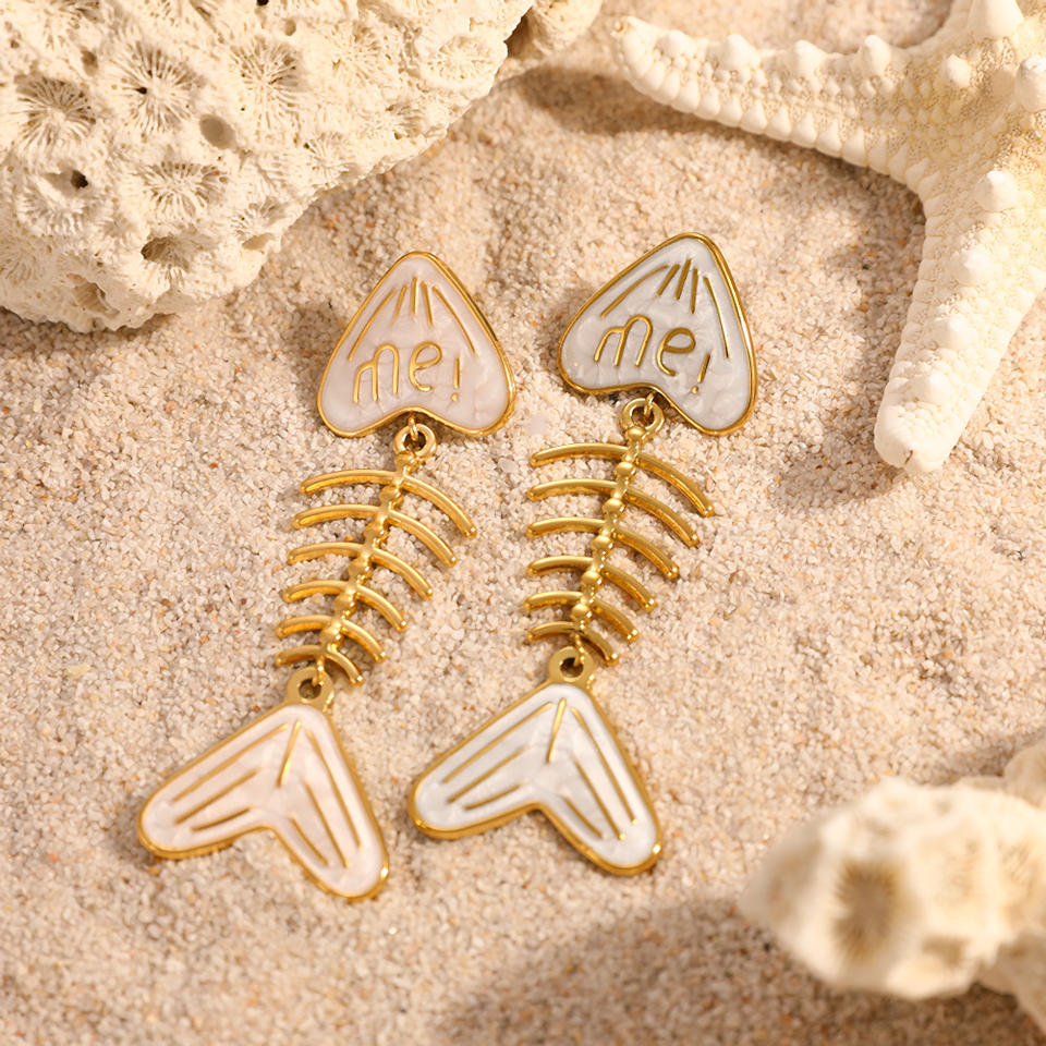 Pendientes colgantes con diseño de espina de pescado de dibujos animados, tachuelas de acero inoxidable chapadas en oro de 18k para mujer, joyería de moda EH12285