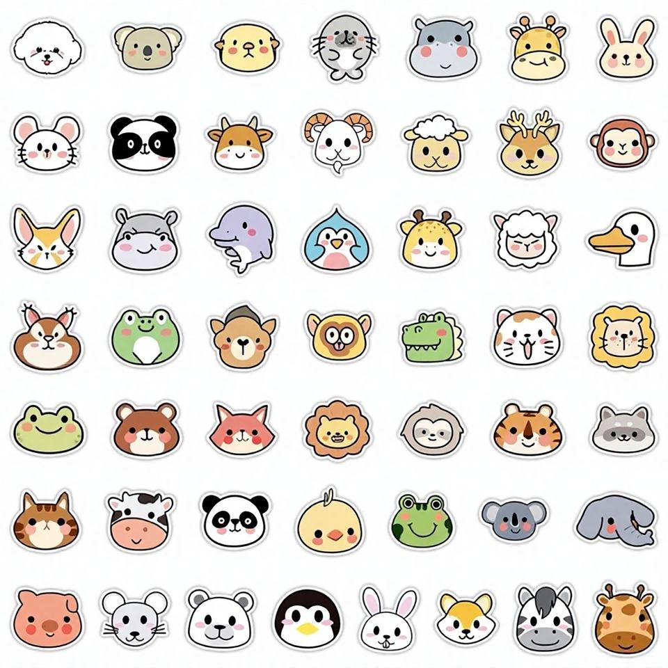 Pegatinas Decorativas de PVC Impermeables con Diseño de Graffiti de Frutiger Aero, Estilo Lindo de Animales, 2 Colecciones, 50 Piezas