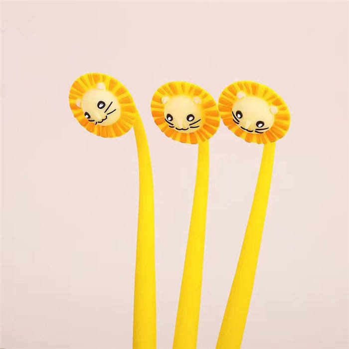 Bolígrafos de Gel de tinta negra León de silicona completa de dibujos animados para estudiantes Ancho de escritura de 0,5mm Hecho de caucho duradero