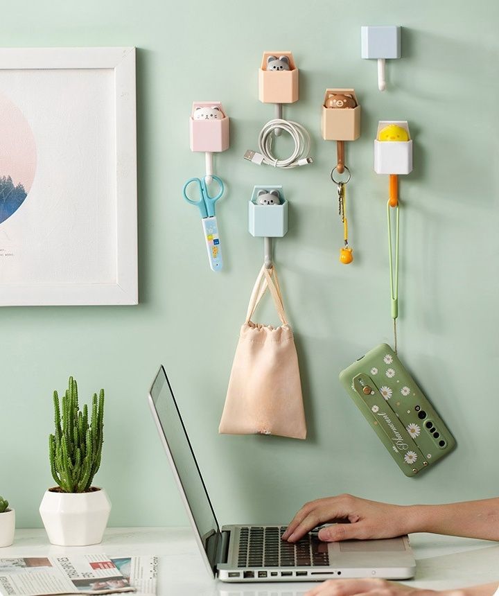 Gancho de dibujos animados Gancho autoadhesivo fuerte Gravedades Inducción Ganchos decorativos Estantes de almacenamiento para llaves Paraguas Toalla
