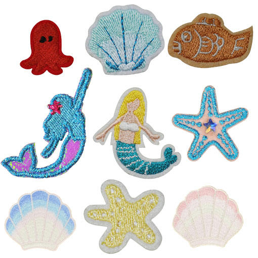 Parche Termoadhesivo de Dibujos Animados con Bordado Exquisito de Pulpo, Pez, Concha y Sirena para Decoración DIY