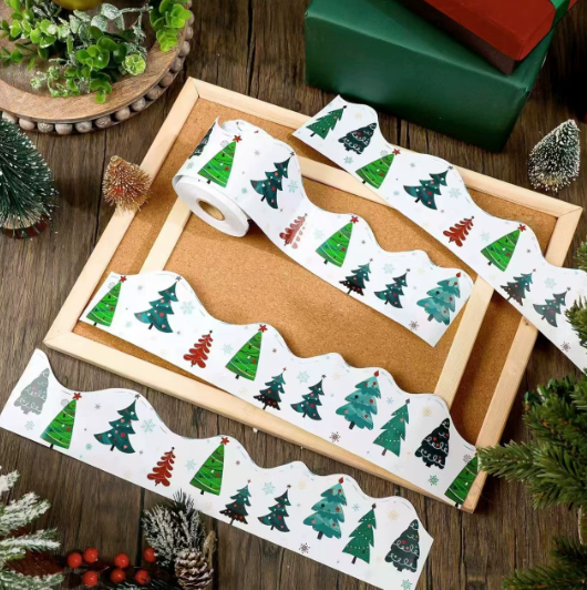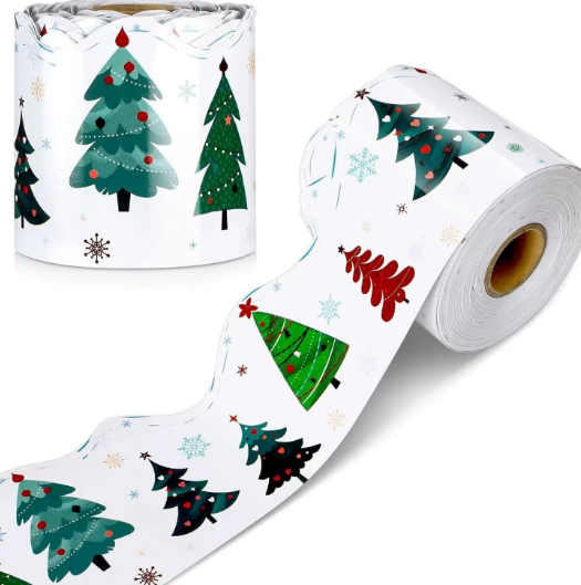 Pegatinas enrollables impresas con figuras irregulares de dibujos animados, papel de arte autoadhesivo, decoración de pizarras, libros, temática navideña festiva