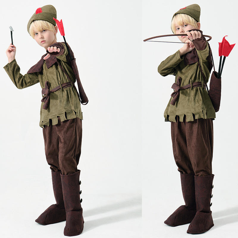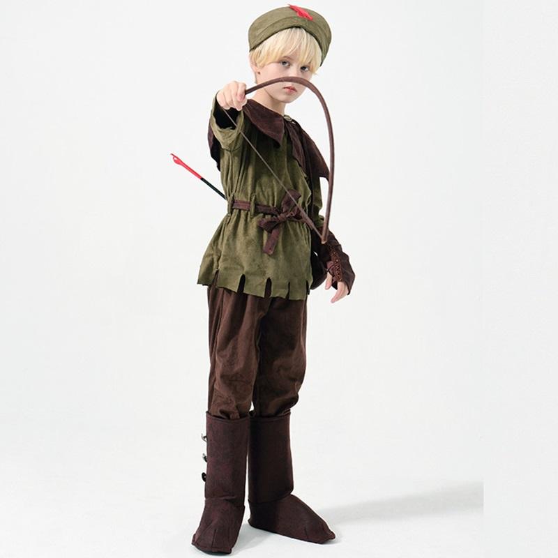Disfraz de Cazador de Caperucita Roja de Dibujos Animados, Disfraz de Indio para Fiesta de Halloween para Niño Arquero