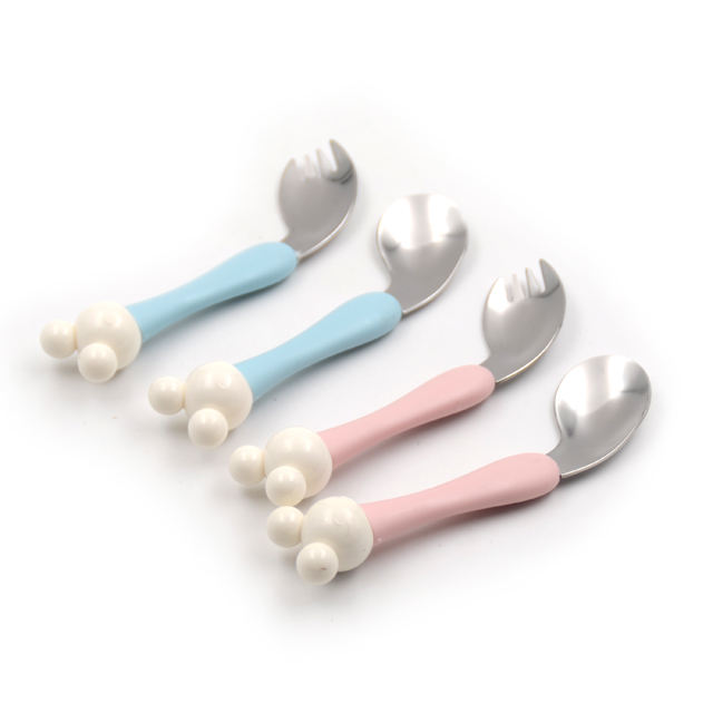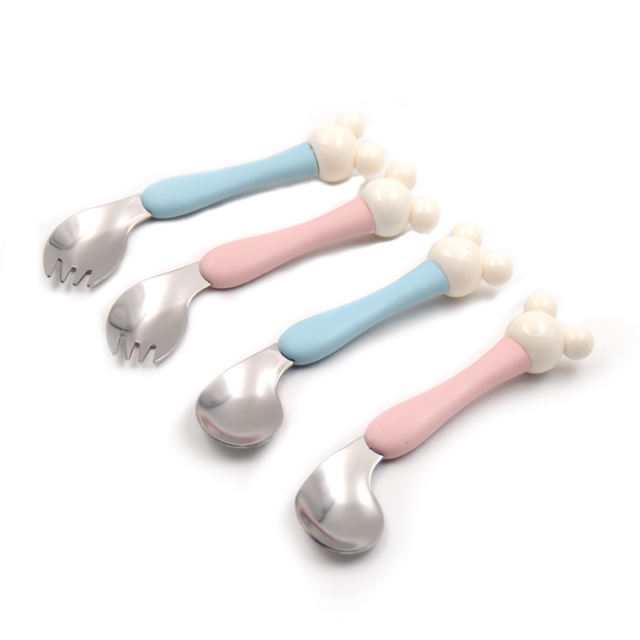 Juego de vajilla para niños de Mickey de dibujos animados, cuchara y tenedor especial de acero inoxidable para bebés, lindo Mango antideslizante, comida para bebés