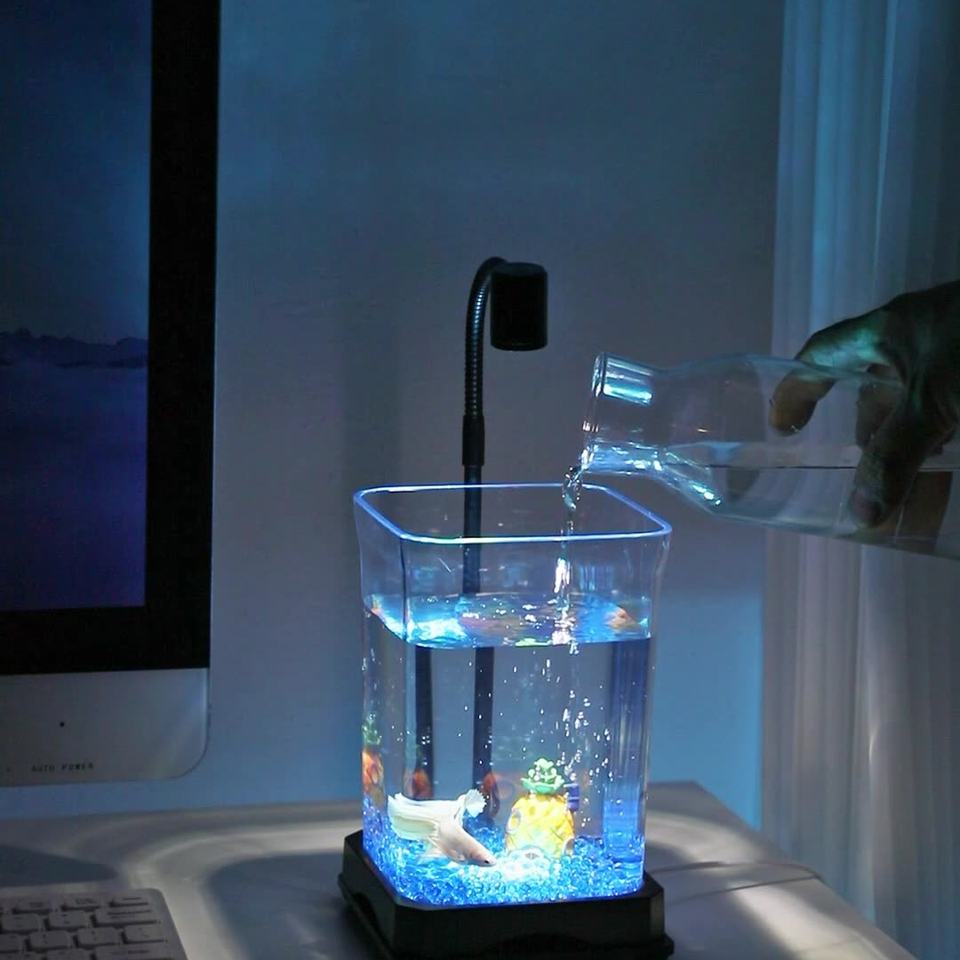 Mini Acuario de Dibujos Animados, Kit de Inicio de Acuario, Mini Acuario LED para Peces Betta, Camarones y Peces Dorados