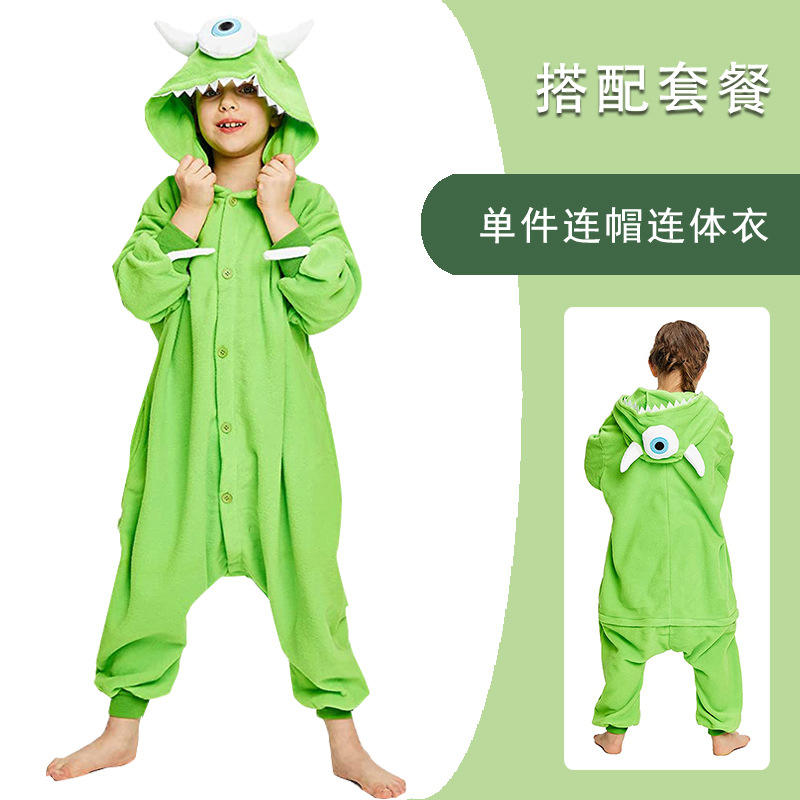 Conjunto de Cosplay de ojo verde de monstruo de dibujos animados, disfraz de Halloween para niños con mono de ojo grande y sombrero para fanáticos del Anime para niños