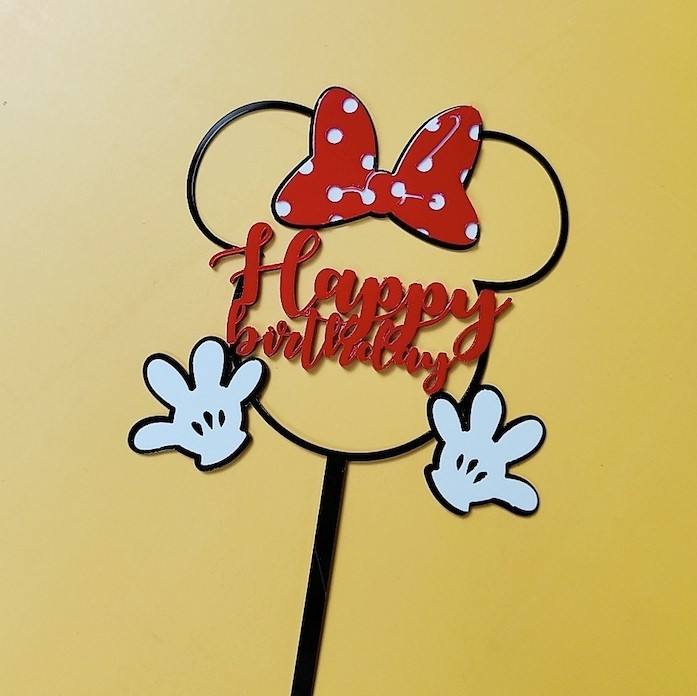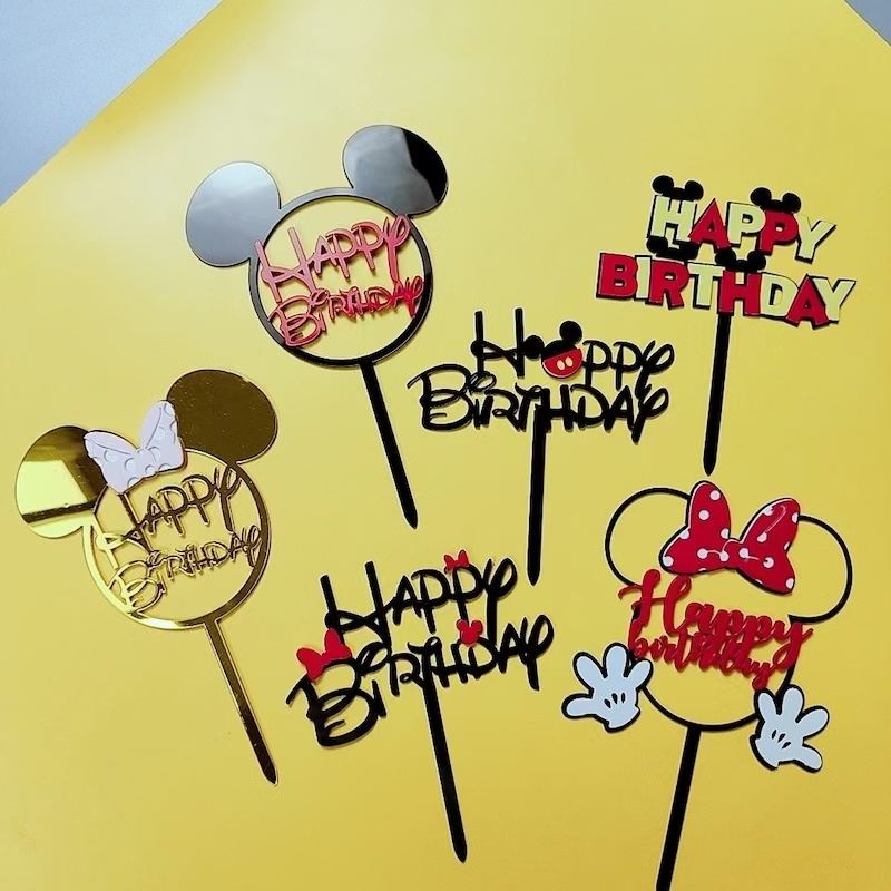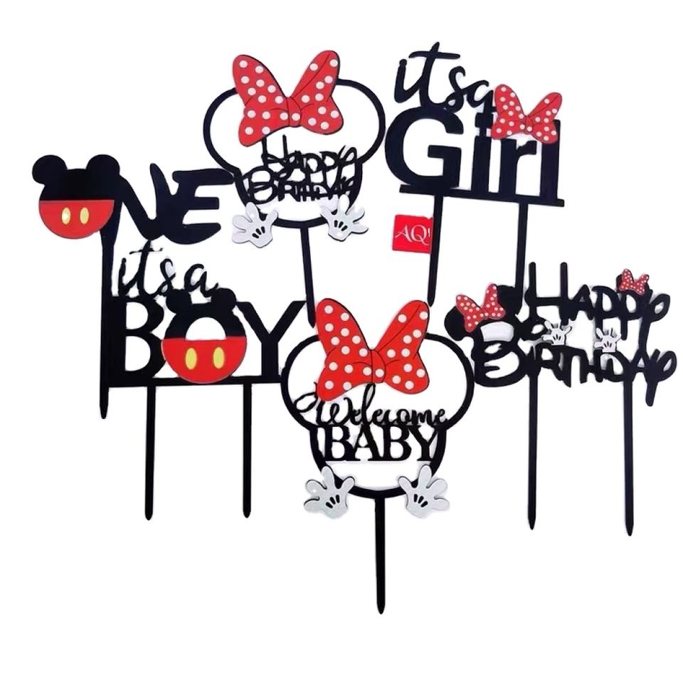 Adornos de Pastel de Acrílico con Diseño de Ratón de Dibujos Animados, Rojo y Negro, para Graduación, Navidad, Baby Shower, Feliz Cumpleaños