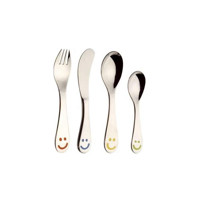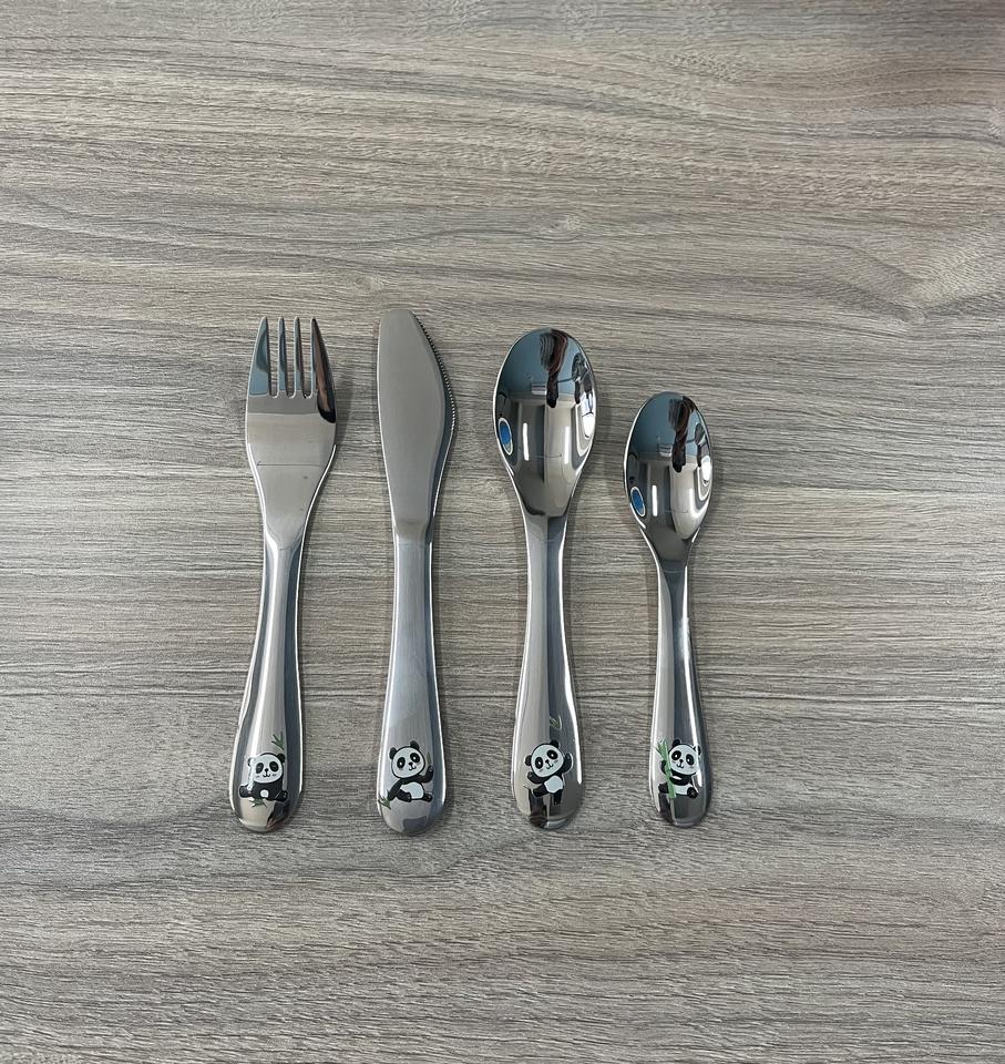 Juego de cubiertos con patrón de dibujos animados para niños, vajilla de estilo occidental, cubiertos de cobre, tenedor y cuchara, 4 piezas