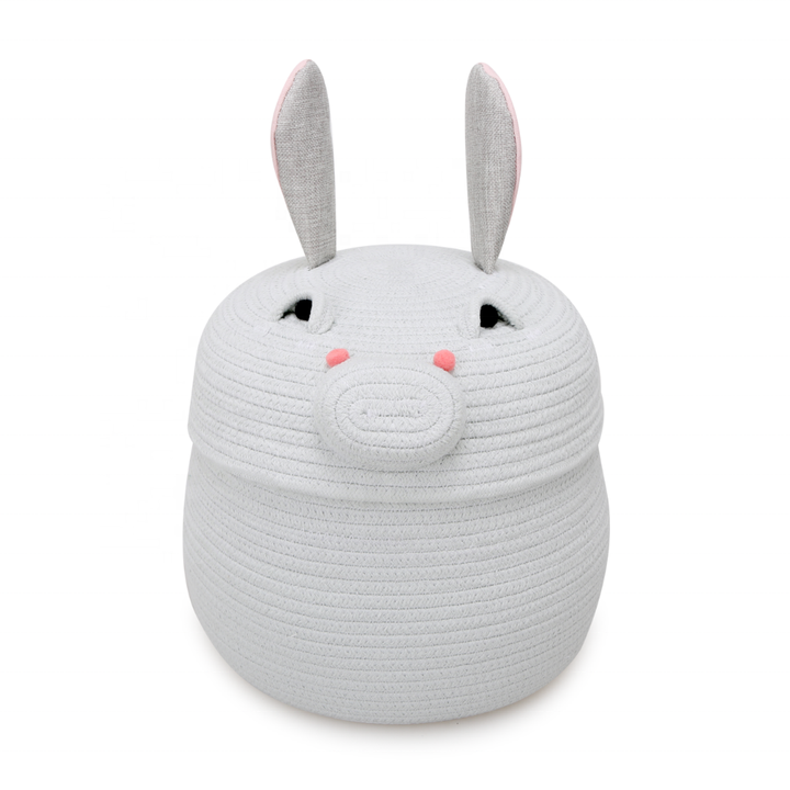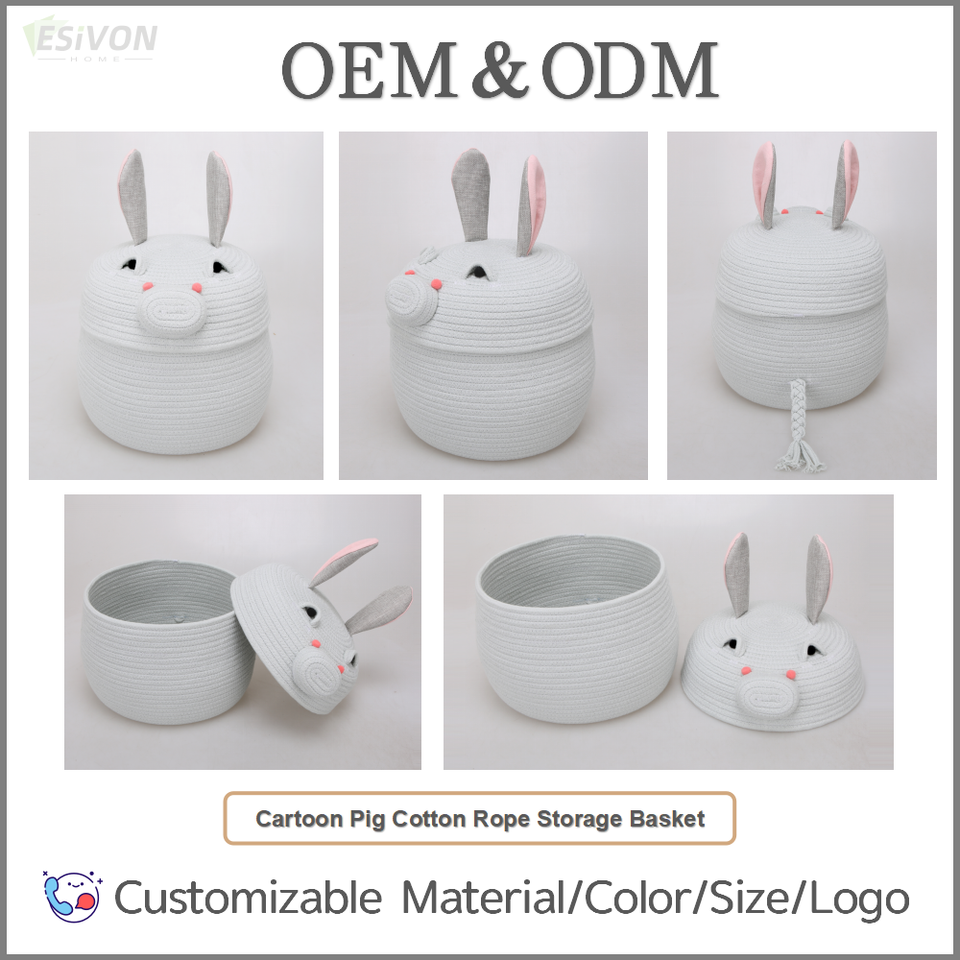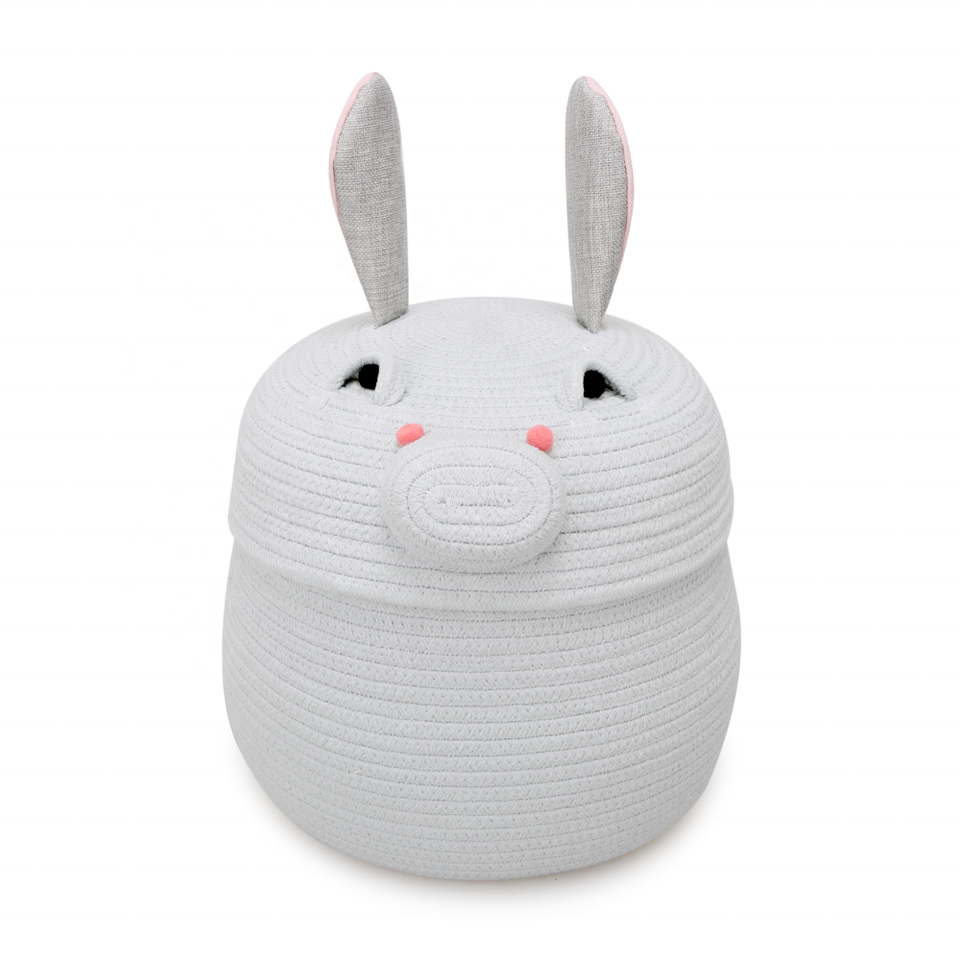 Cesta de Almacenamiento de Cuerda de Algodón con Tapa, Diseño de Conejo y Cerdo de Dibujos Animados, Multifuncional y Sostenible para Habitación Infantil, Guardería, Almacenamiento de Juguetes, Regalo Personalizado