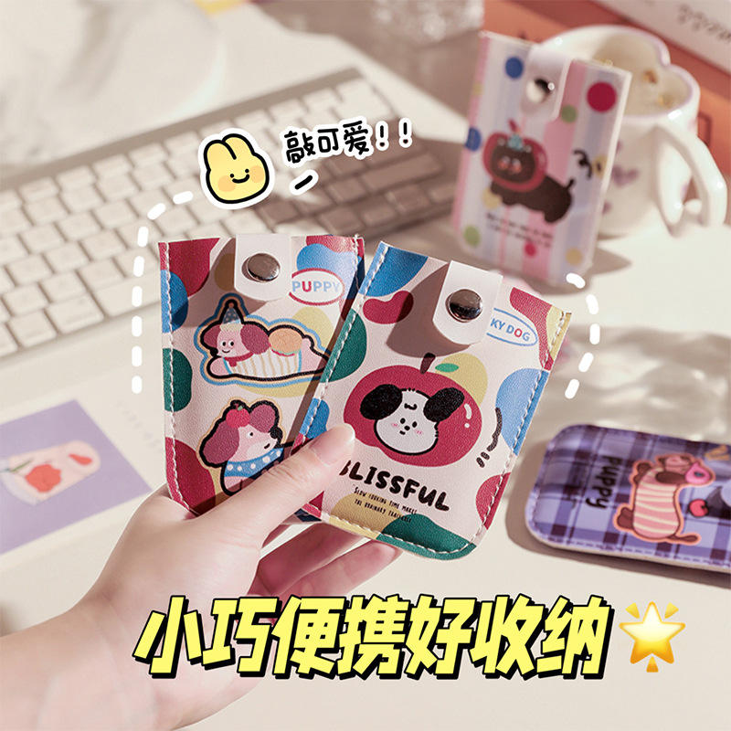 Cartoon Pull Out Card Holder Multi Slot Leather Credit Card Organizer Portable Everyday Use 4 Inch