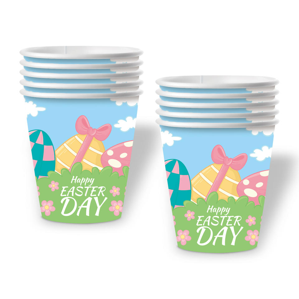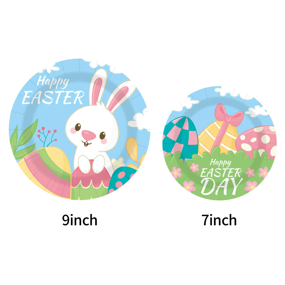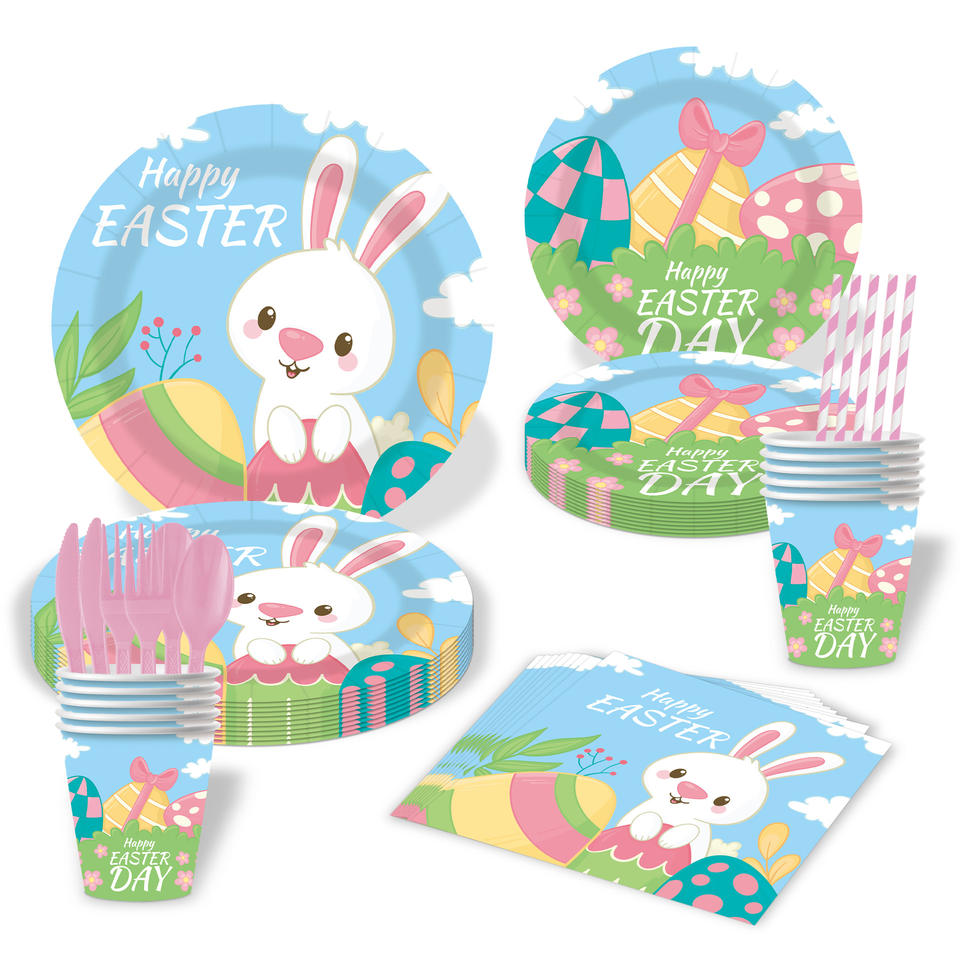Juego de Vajilla Desechable con Diseño de Conejo de Dibujos Animados para Fiesta de Cumpleaños, Platos y Vasos de Papel, Ambiente Festivo de Pascua