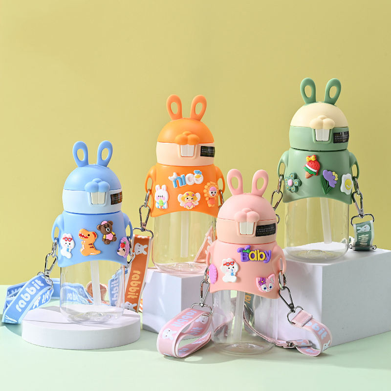 Nombre del producto:Botella de agua de plástico conejo con paja verano niños beber botellas