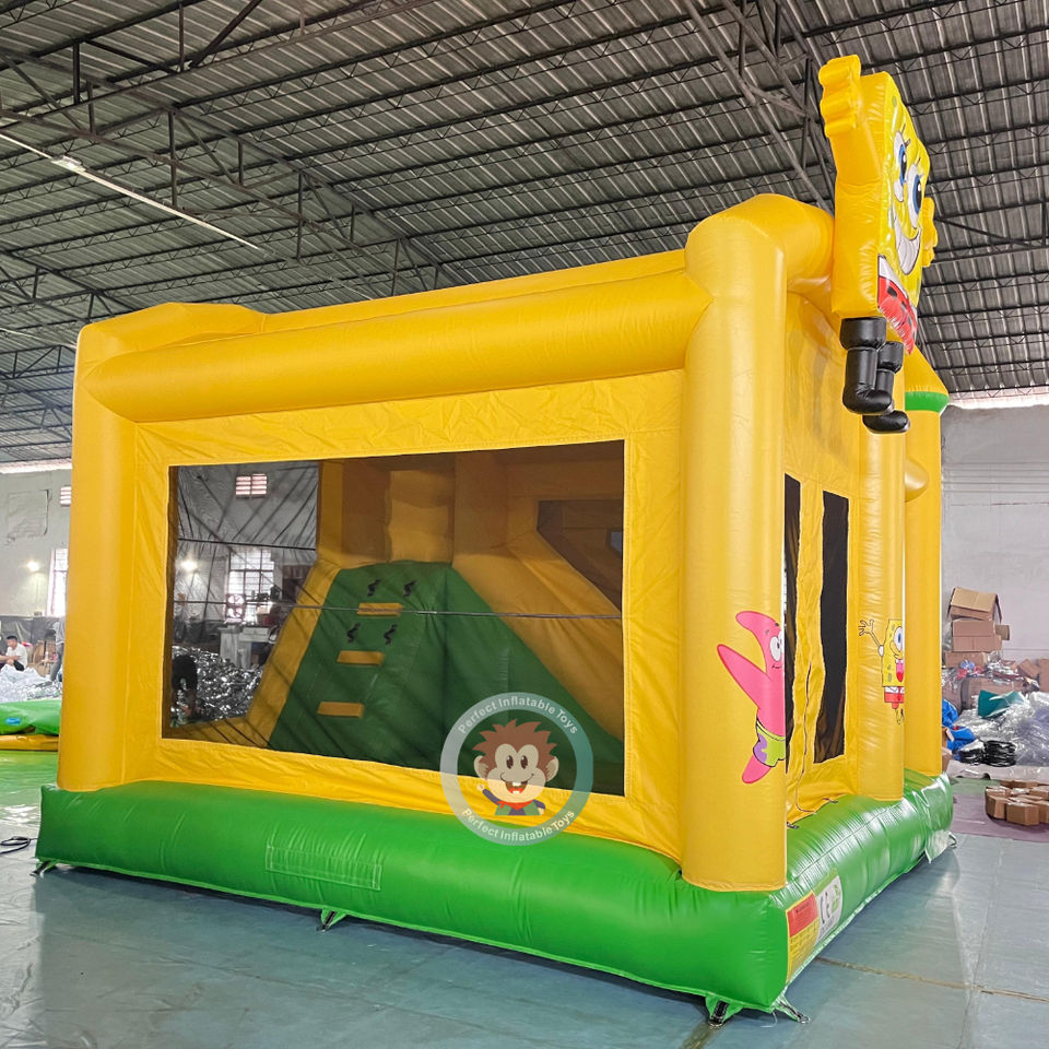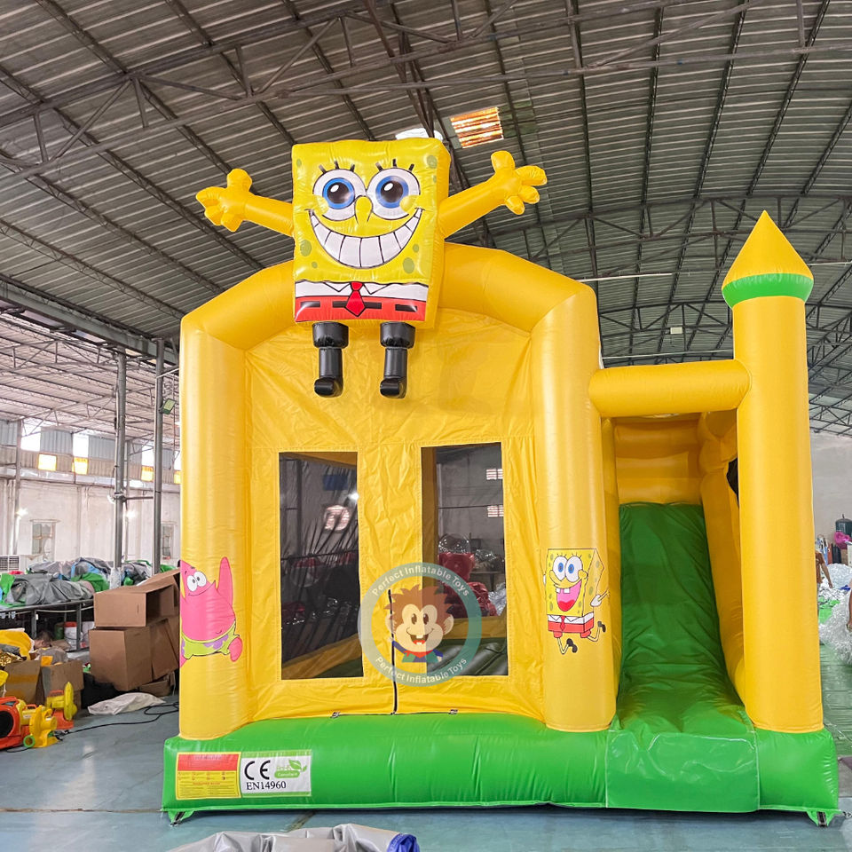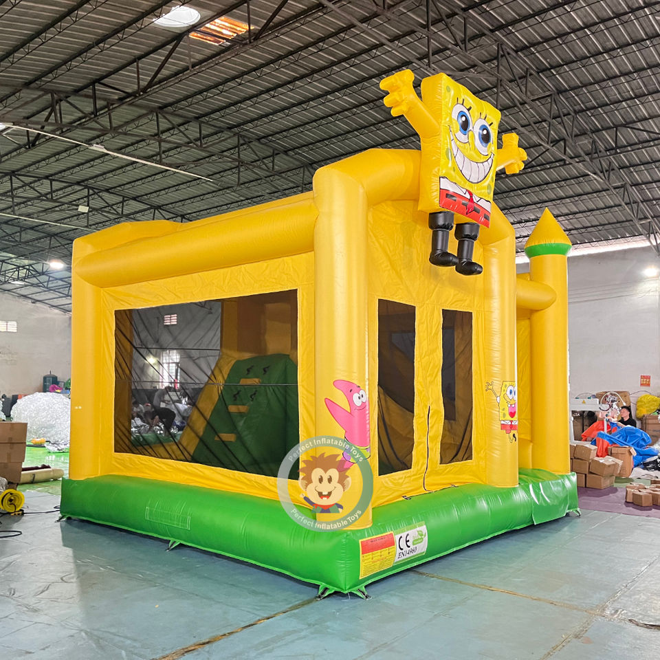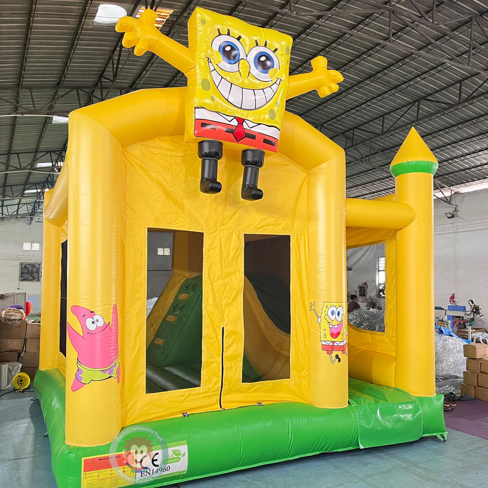 Juguetes de Bob Esponja de dibujos animados, casa inflable de rebote y Tobogán, juguetes comerciales para niños, Castillo que rebota