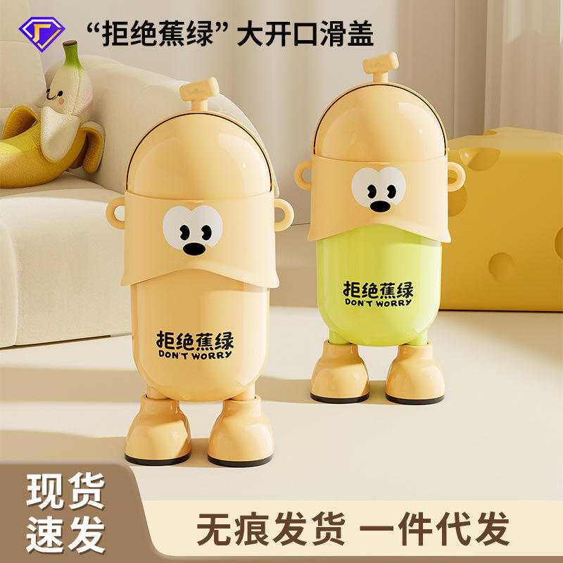 Bote de basura estilo caricatura con patas, amarillo, para uso en interiores, diseño cilíndrico de alta capacidad para el hogar y la oficina