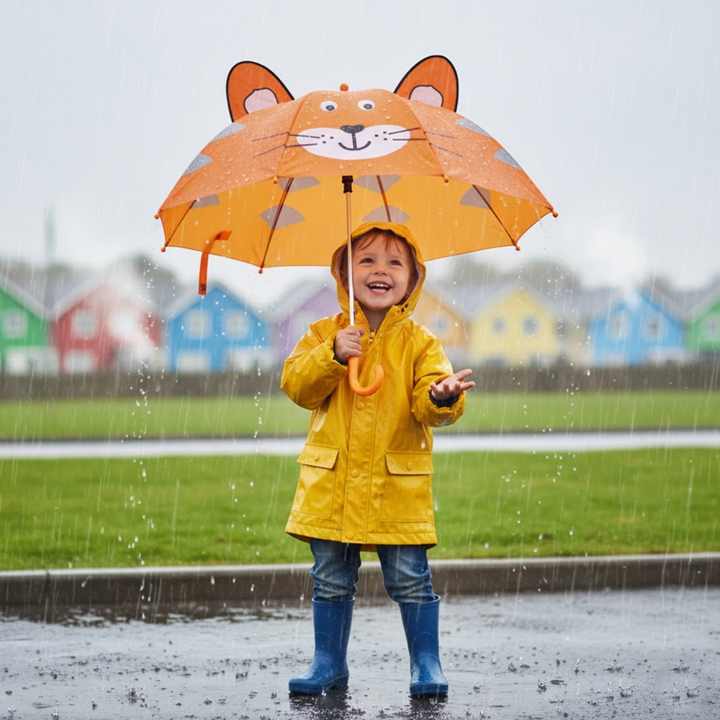 Paraguas Impermeable con Diseño de Tigre de Dibujos Animados, con Orejas Elevables, para Niños, Control Manual, Seguro para Niños, Diseño Bonito, Regreso a Clases, Poliéster