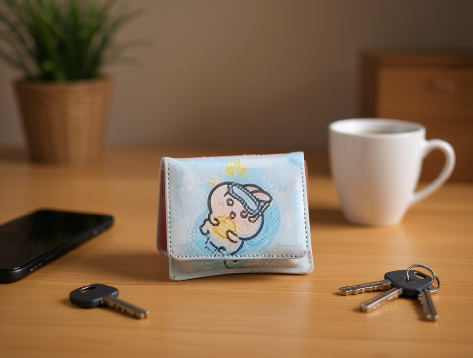 Cartera Triple Plegable de Dibujos Animados de 7 Pulgadas, Material PU, Unisex, Uso Diario, Cartera Corta con Estampado de Dibujos Animados