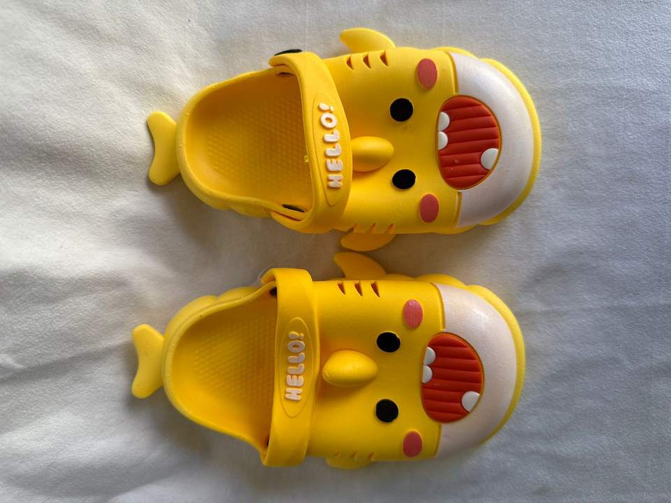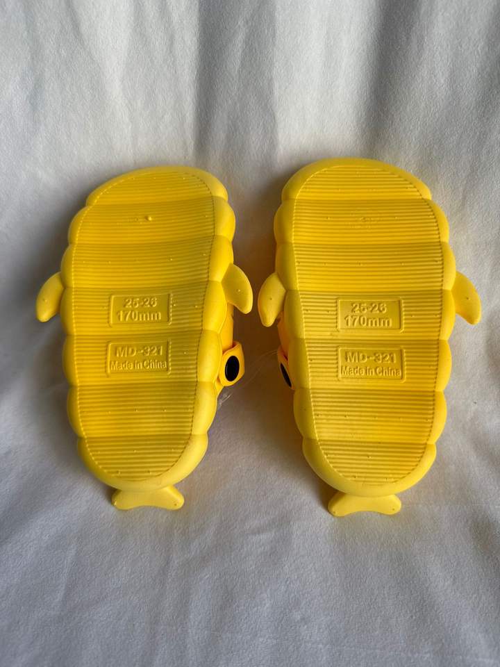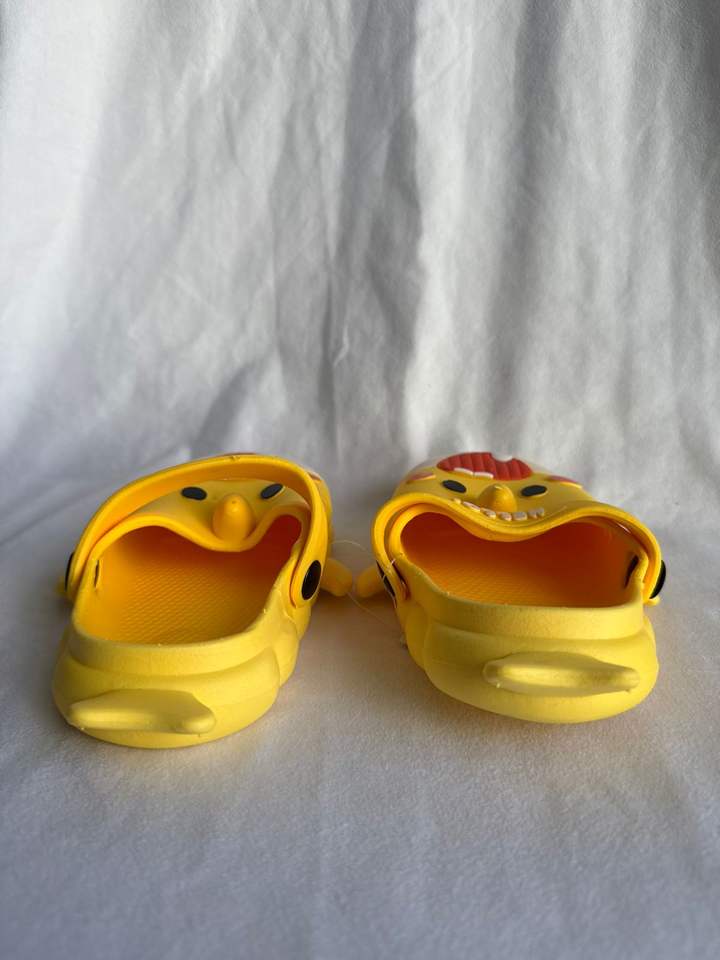 Cartoon Yellow PVC Slippers Anti Slip Round Toe Home Shoes Size 23-30 All Seasons EVA Midsole