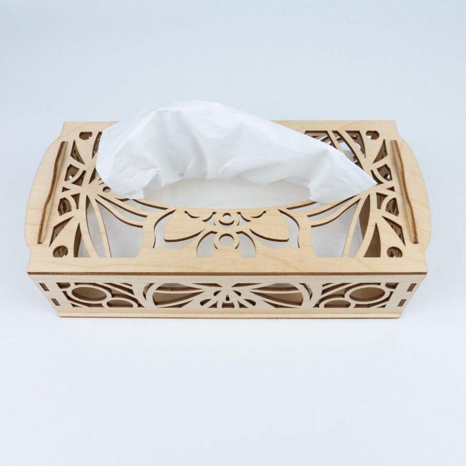 Caja de pañuelos de MDF tallada para fines decorativos que agrega un toque tradicional a la decoración contemporánea del hogar y la Oficina