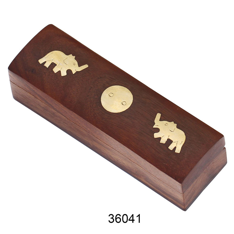 Caja de madera cuadrada con incrustación de latón, contenedor de joyería y baratijas con diseño superior del sol