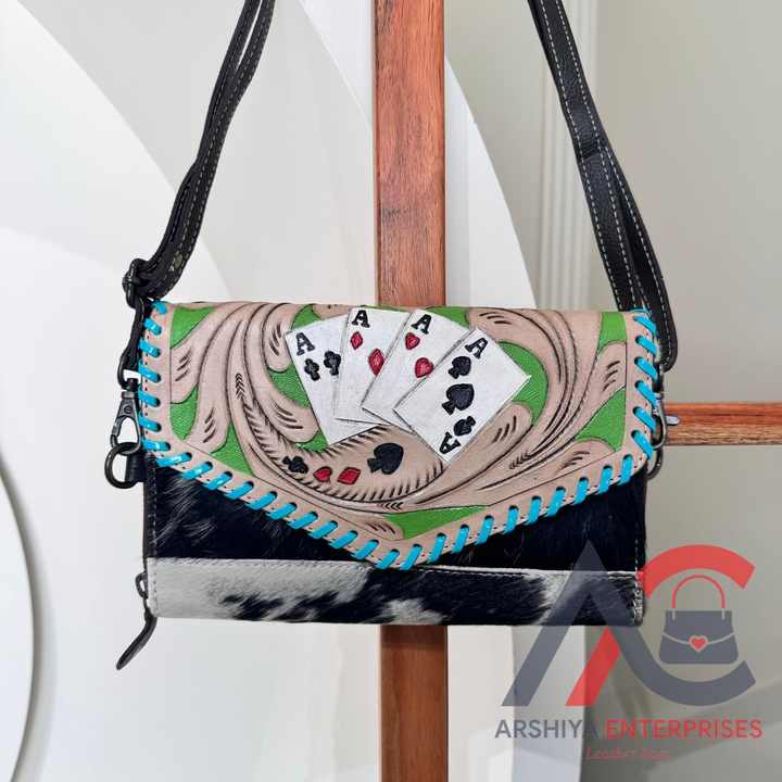 Designer Tooled Leather Sling Bag