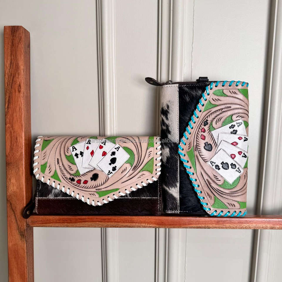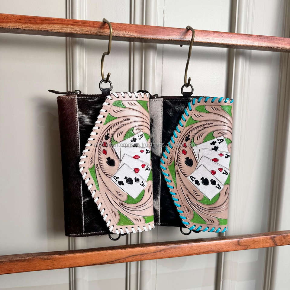Elegante billetera de cuero de vaca turquesa para mujer, funda de teléfono de mano tallada, accesorio elegante de moda