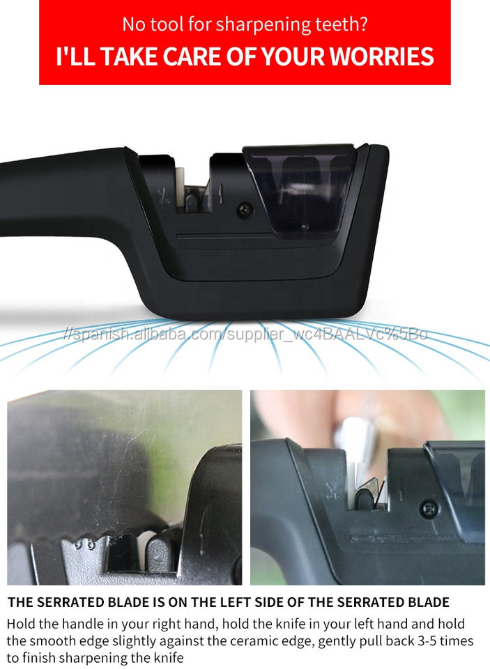 Casa cocina Multi-funcional Chef 4 en 1 tijeras cuchillo afilador para dentada y cuchillos de fruta