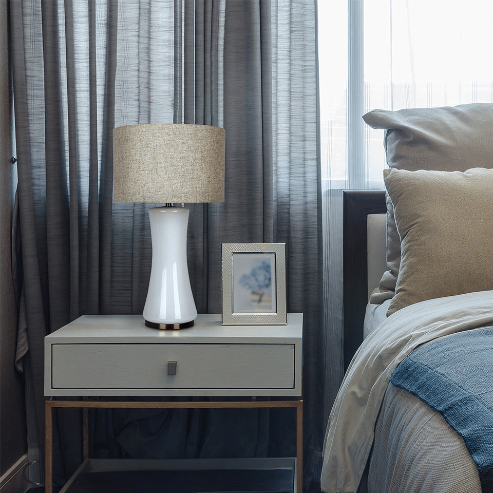 Lámpara de Mesa Cascade de Vidrio Blanco Roto con Base Dorada, Elegante Lámpara de Vidrio Cascade