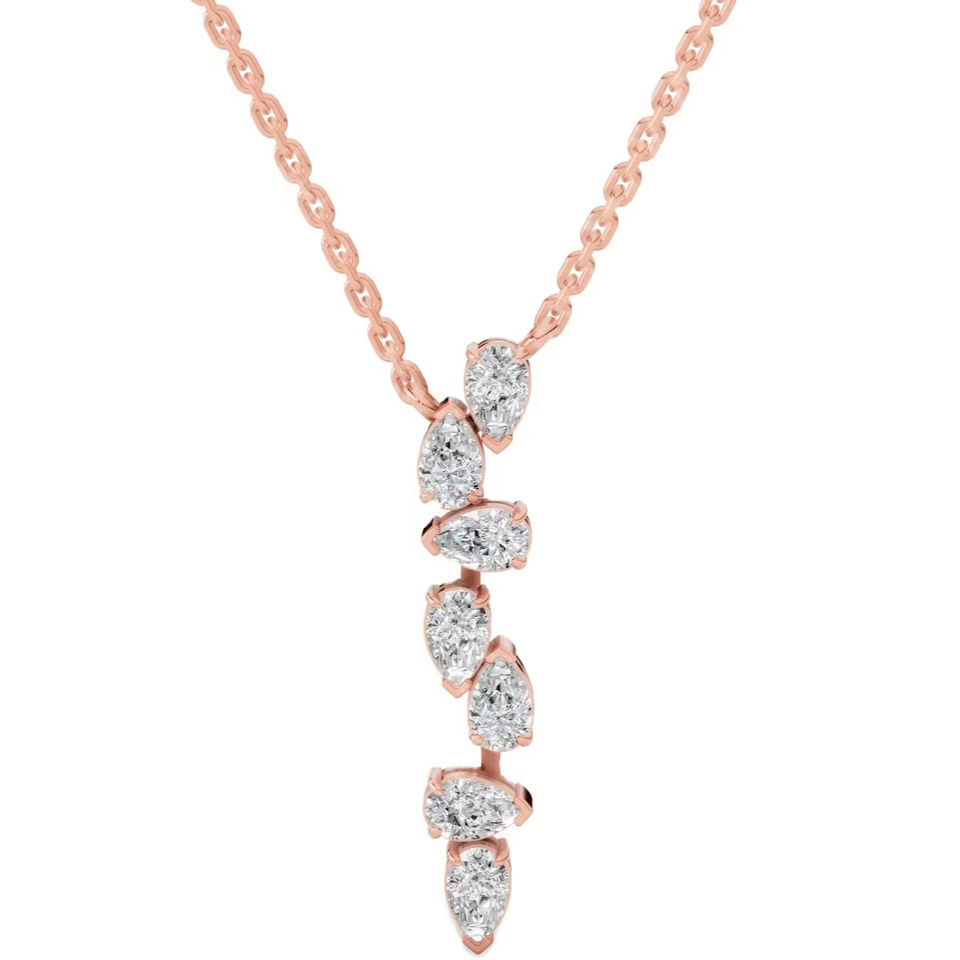Collar con Colgante de Diamante Cultivado en Laboratorio en Forma de Pera en Cascada, Oro de 18K, Regalo de Lujo para Compromiso o Boda, Corte Pera, Solitario