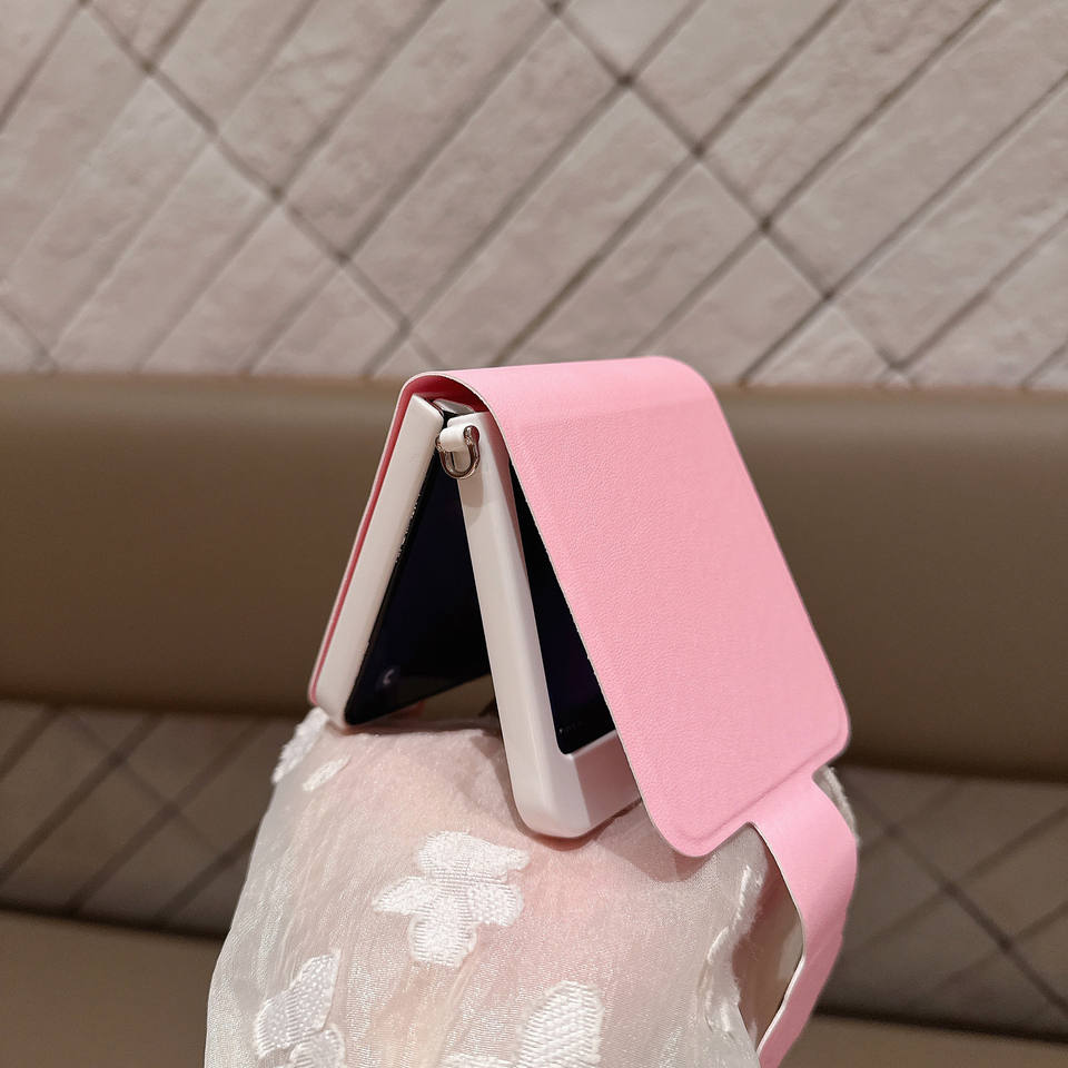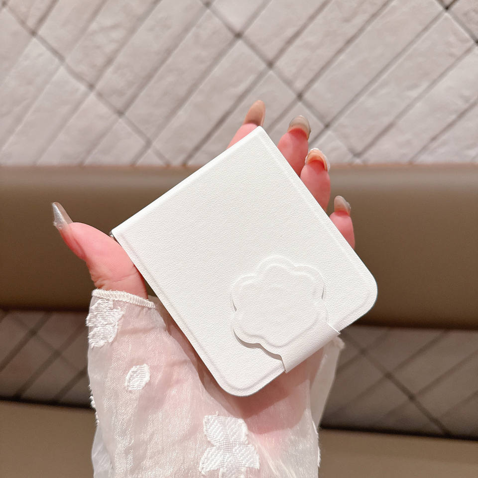 Funda para Samsung ZFlip7 de Color Sólido con Relieve, Funda Plegable para Teléfono con Patrón de Cuero 75% Plegado, Cubierta Protectora Creativa con Diseño de Pata de Gato