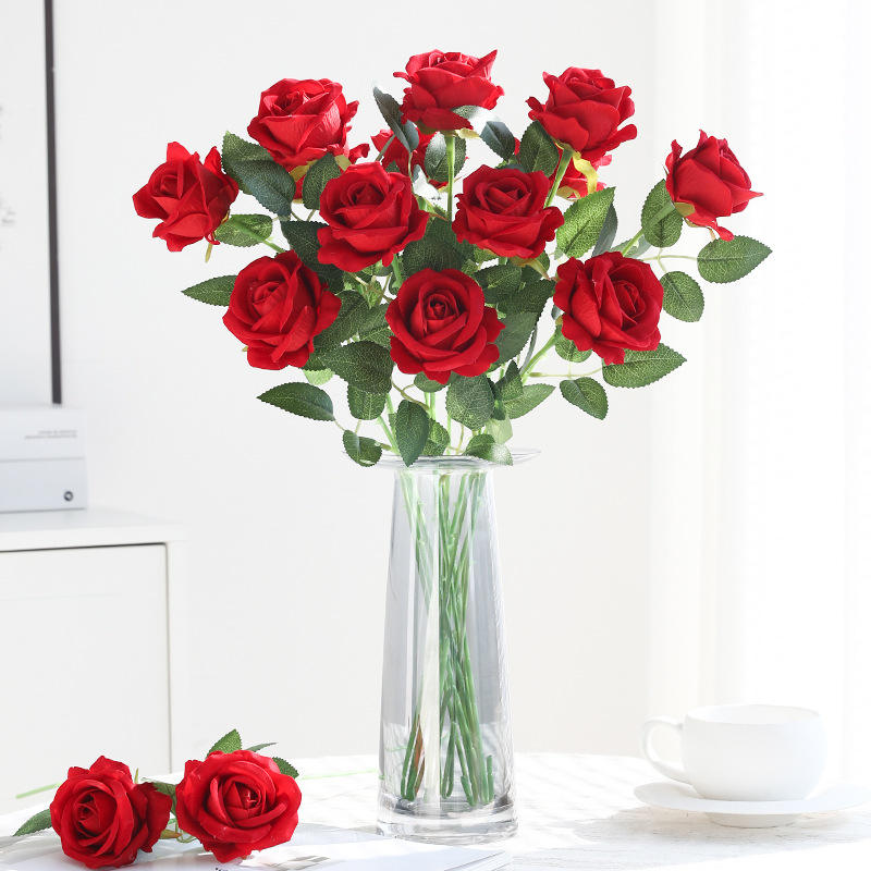 Caja para Uso en Emergencias, Flor de Rosa Roja de Terciopelo, Cascada de Flores Artificiales, Regalo para el Día de San Valentín o Boda