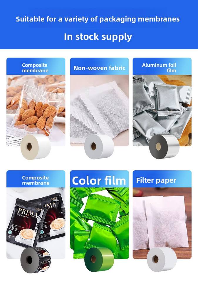 Material de película:Plástico, papel de aluminio, papel de filtro, no tejido, etc.