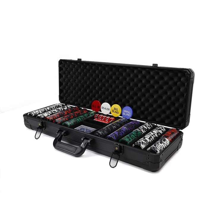 Juego de 500 fichas de póker de arcilla con estuche de aluminio negroNombre del producto