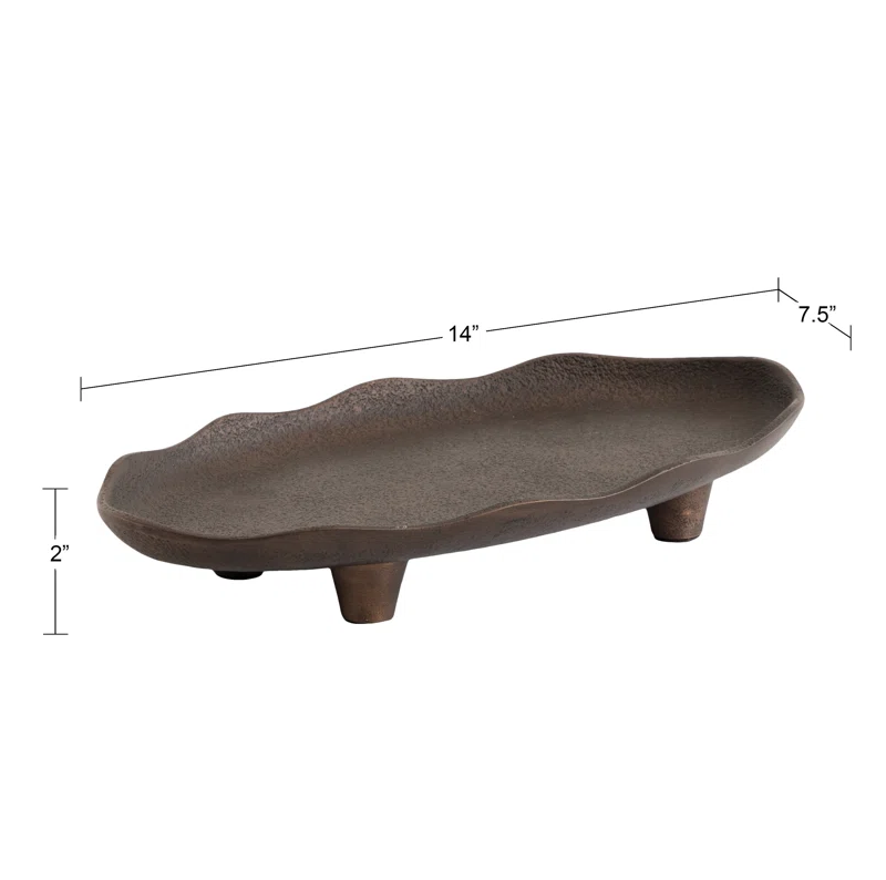 Bandeja de pedestal de aluminio fundido con textura rugosa, bandeja de servicio de metal moderna acabada en bronce para bandeja de restaurante con logotipo personalizado