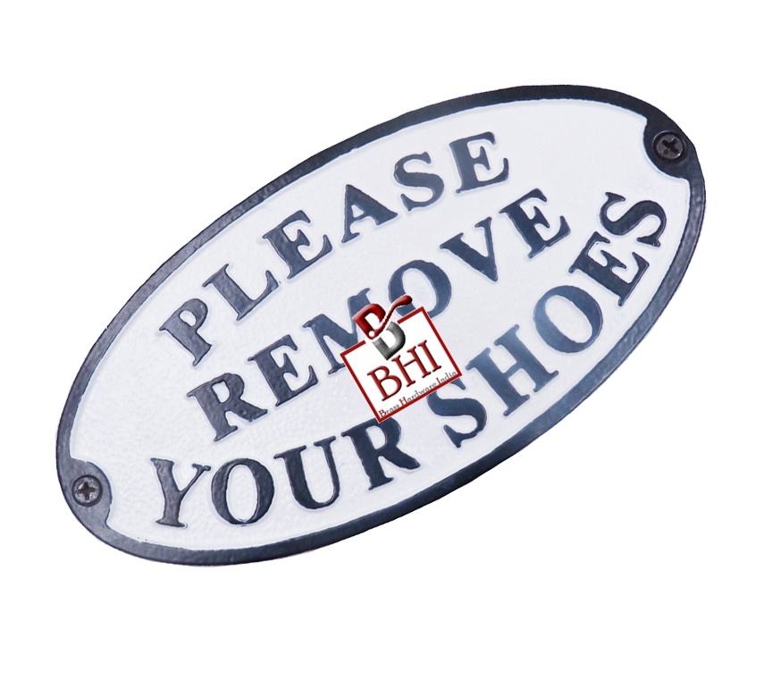 Nombre del elemento:Placa de señal de hierro fundido Por favor quite sus zapatos