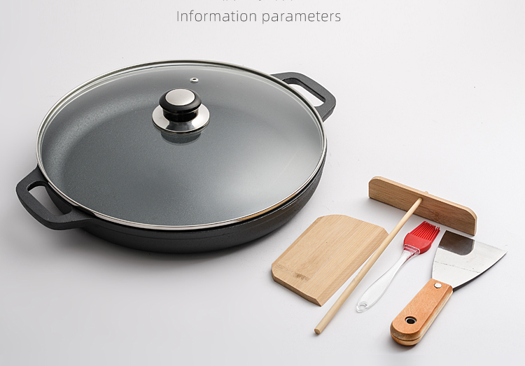 Sartén antiadherente de hierro fundido, sartén para pizza de hierro fundido de alta calidad, venta al por mayor