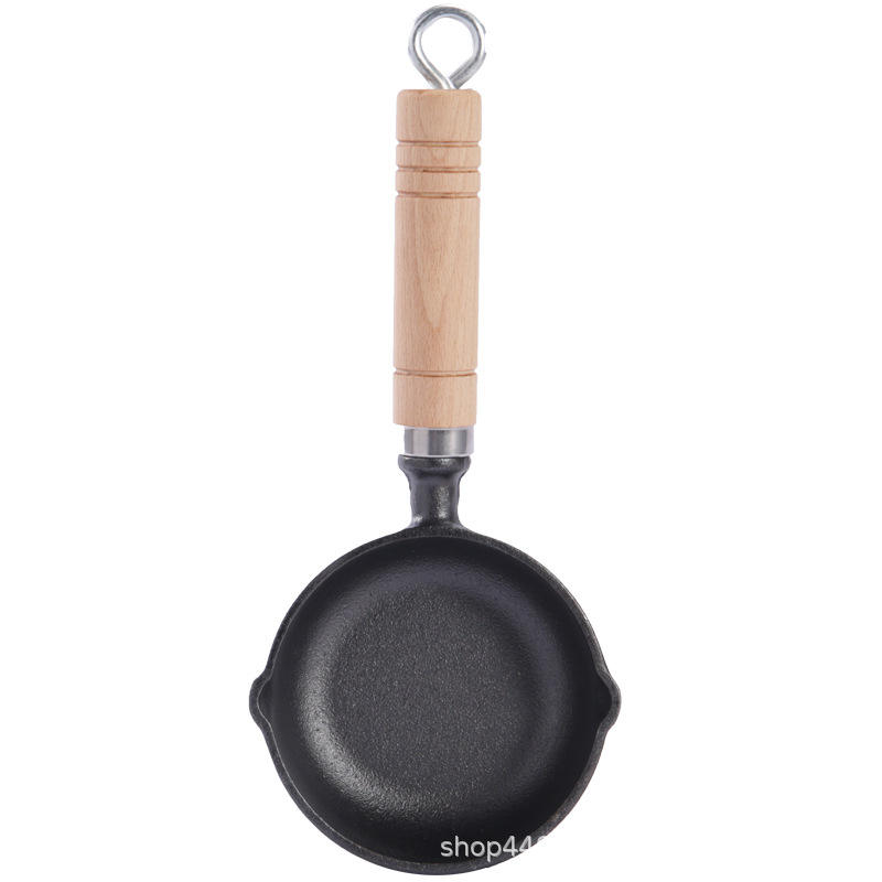 Mini sartén de hierro fundido de 11 cm, antiadherente, redonda, para cocinar en casa, para panqueques y huevos, con mango de madera.