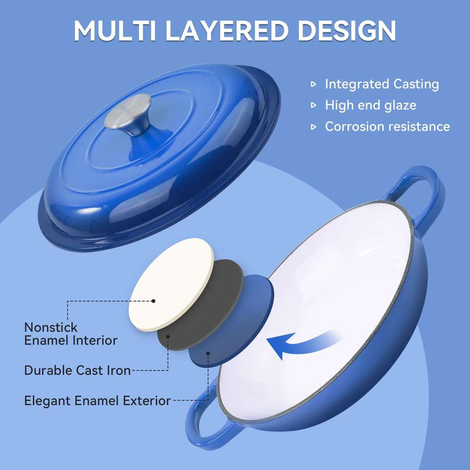 Olla de sopa de hierro fundido con orejas dobles gruesas Fuerte capacidad de carga Práctico uso sin esfuerzo Tapa de vidrio