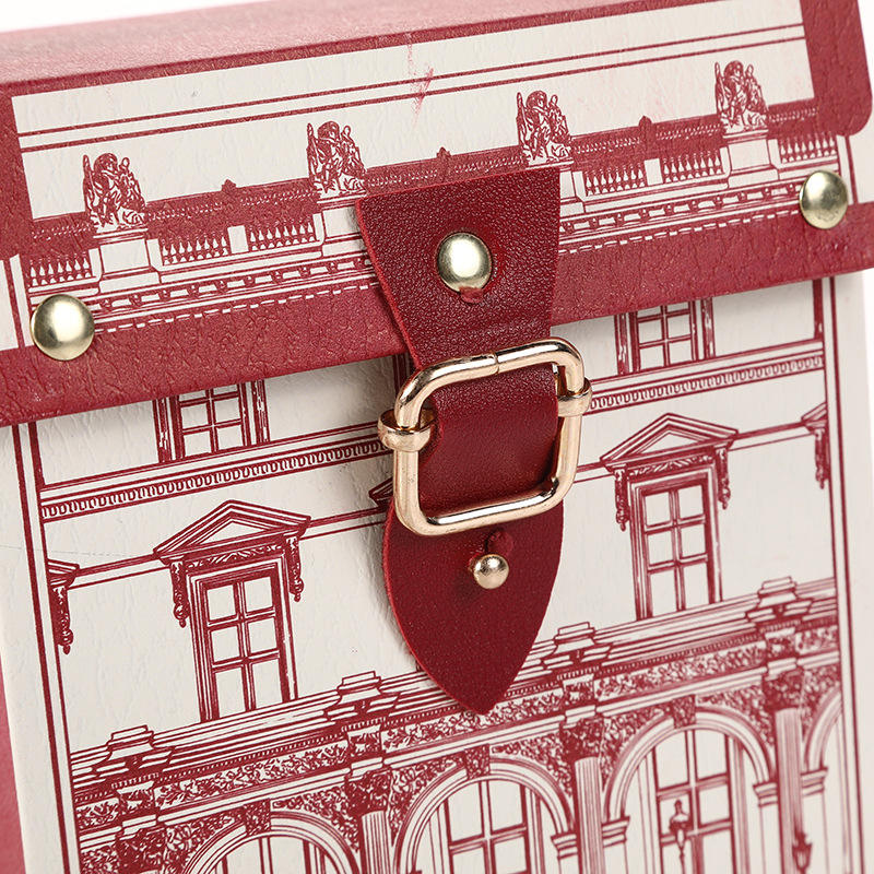 Caja de regalo de fiesta de boda, diseño de Castillo, con mango de pu redondo con cerradura