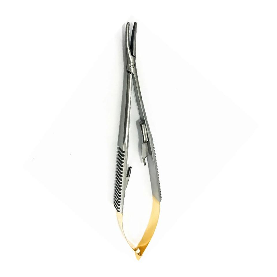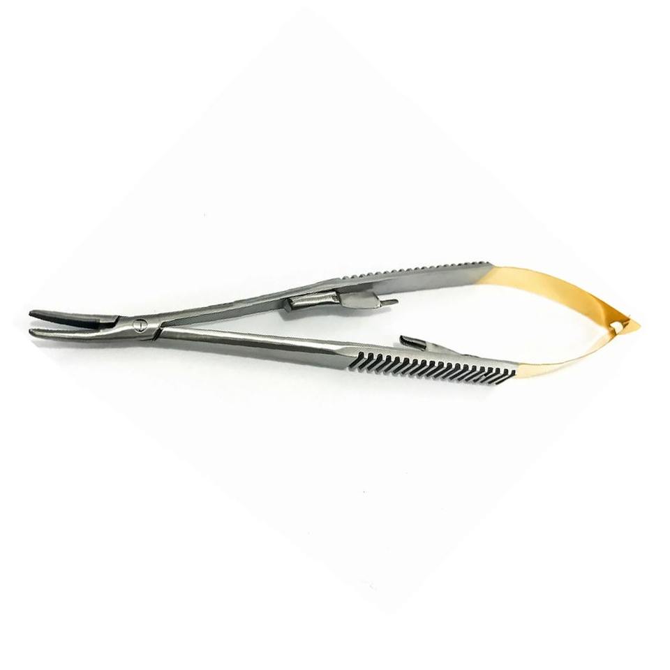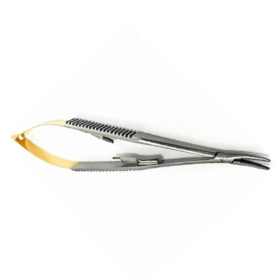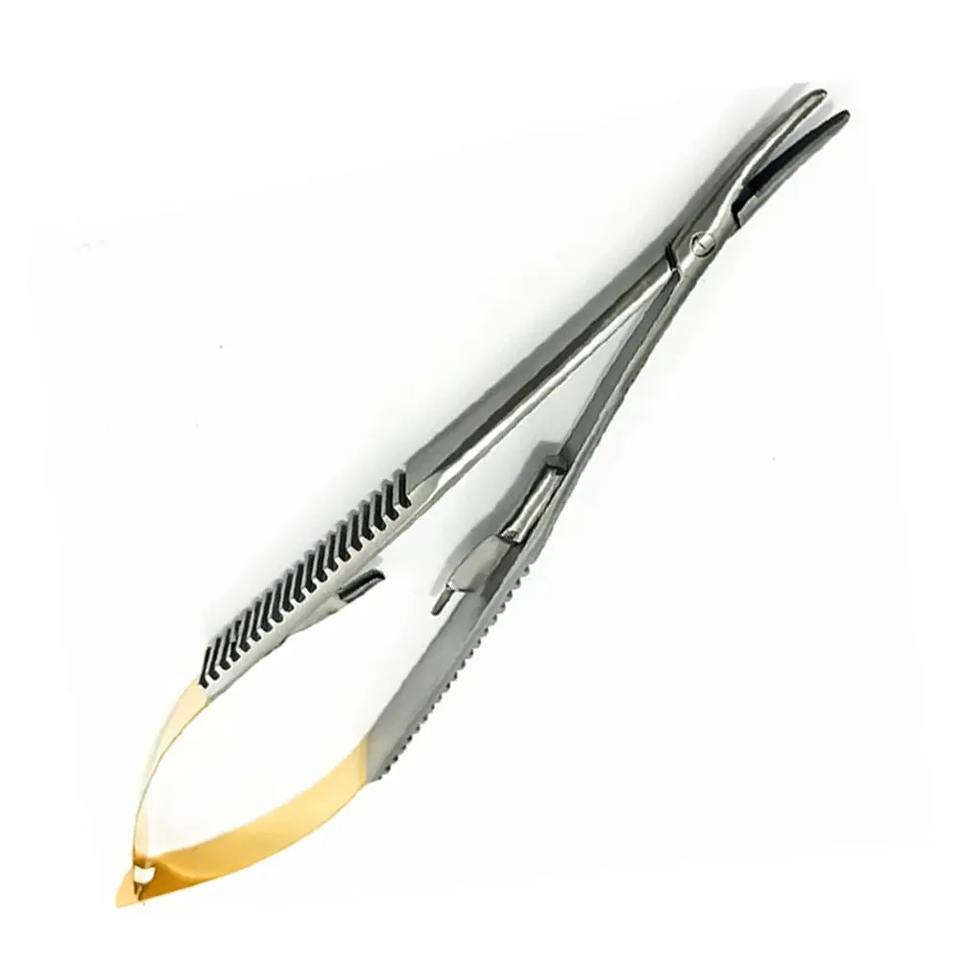 Instrumento microquirúrgico Castroviejo de 14cm, portaagujas curvo reutilizable con puntas redondas, fuente de alimentación Manual, instrumentos quirúrgicos