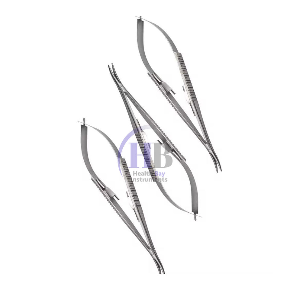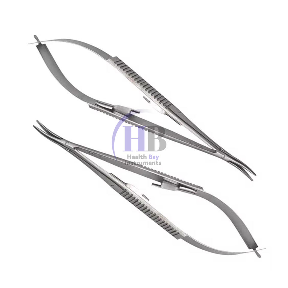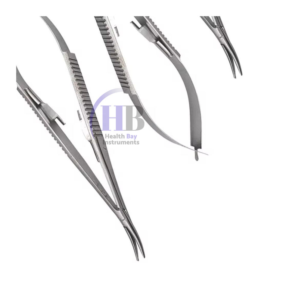 Juego de Tijeras Portaagujas Castroviejo con Mango Curvo de Resorte, Instrumentos de Cirugía General de Acero Inoxidable