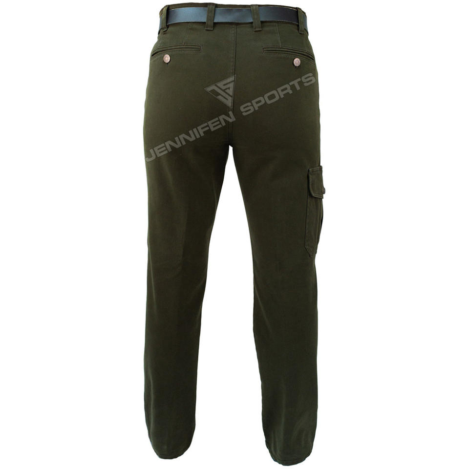 Pantalón de caza de carga informal, tela de lona de algodón 100%, cremallera y botón de cierre frontal, bolsillos traseros, bucles para cinturón, forro interior de algodón