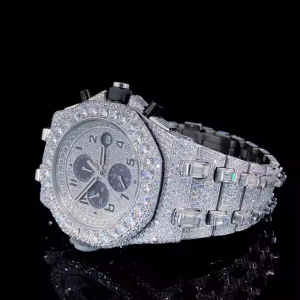 Casual Formal de los hombres de la vida diaria Hip Hop reloj de acero inoxidable Moissanite diamante cristal de cuarzo diseñado para la moda de negocios