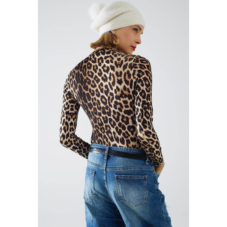 Body de Spandex con Estampado de Leopardo Informal, Mangas Largas, Cuello Alto, para Chicas, Ajustado, Sexy, Hasta la Rodilla, Tejido de Punto