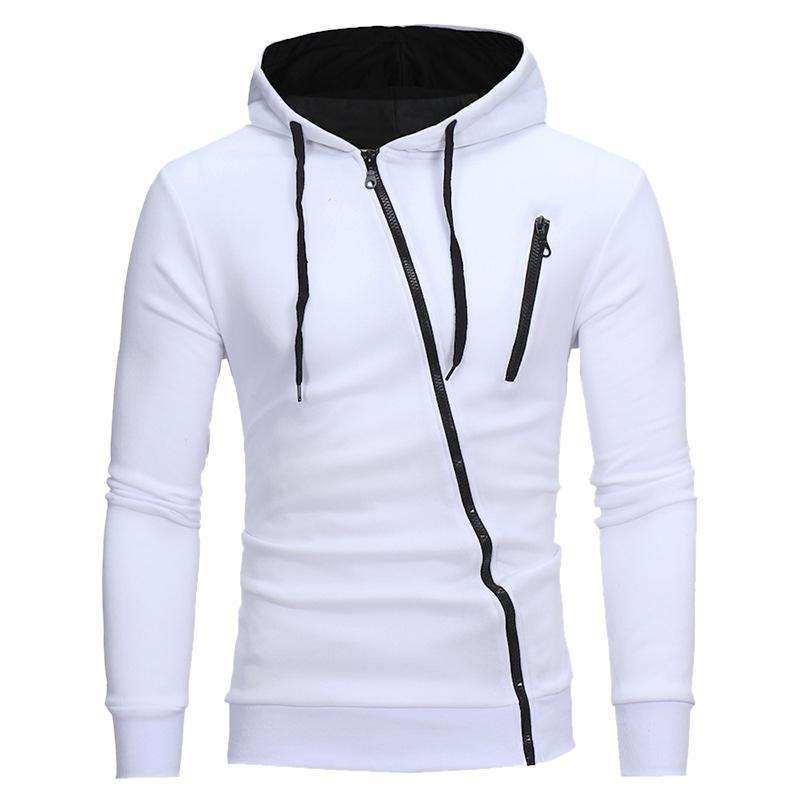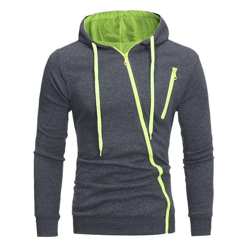 Sudaderas con capucha informales para hombre, abrigo con cremallera diagonal, tendencia de primavera y otoño, ropa de calle personalizada-L, gris