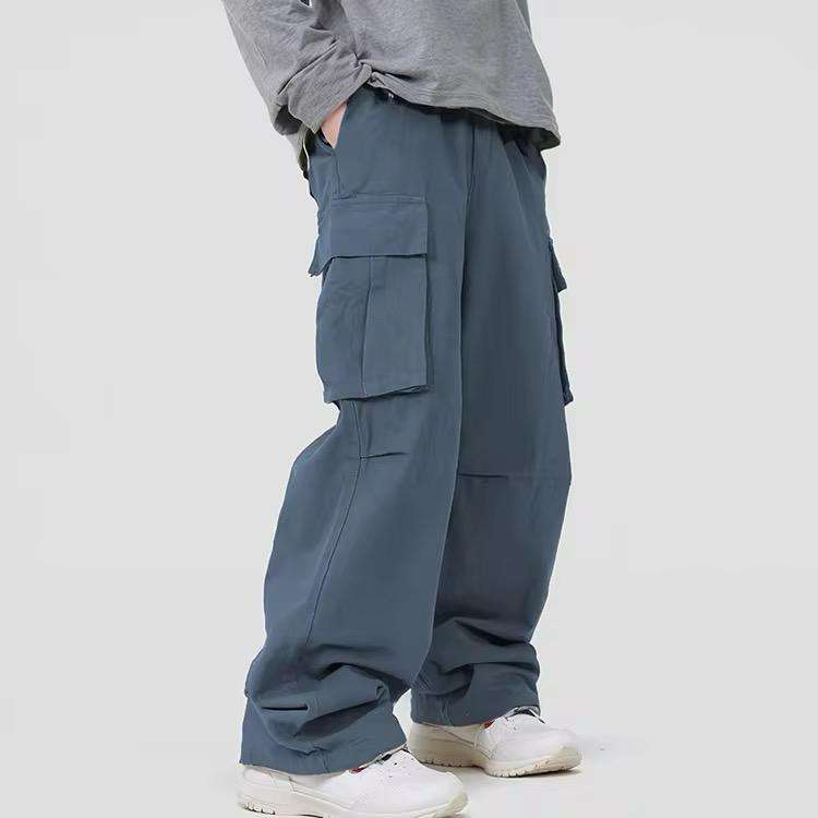 Pantalones Cargo casuales para Hombre | Pantalones sólidos de longitud completa de algodón 100% con cintura con cordón y bolsillos
